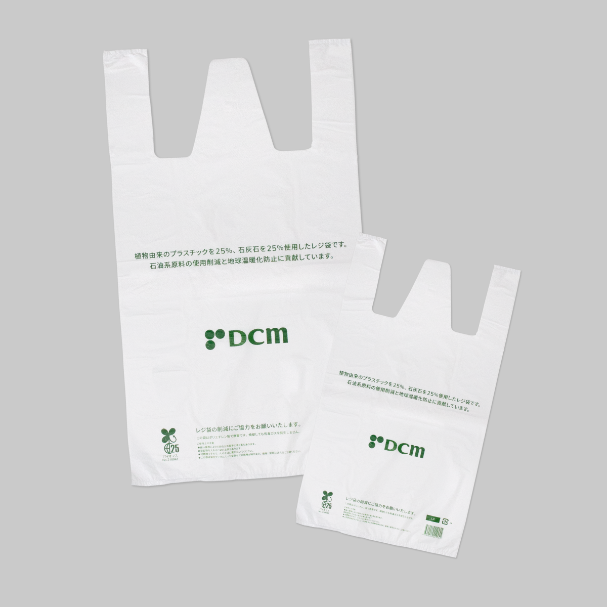 DCMでは、2020年7月のレジ袋有料化に伴い、それまでのポリエチレン製レジ袋から環境負荷の低いバイオマスプラスチックを約25%配合したレジ袋に切り替え、これまでにレジ袋の使用枚数を85%削減しました。さらに環境負荷の低いレジ袋を検討する中で、Bio LimeAir Bagの環境性能と機能性を評価いただき採用に至りました。