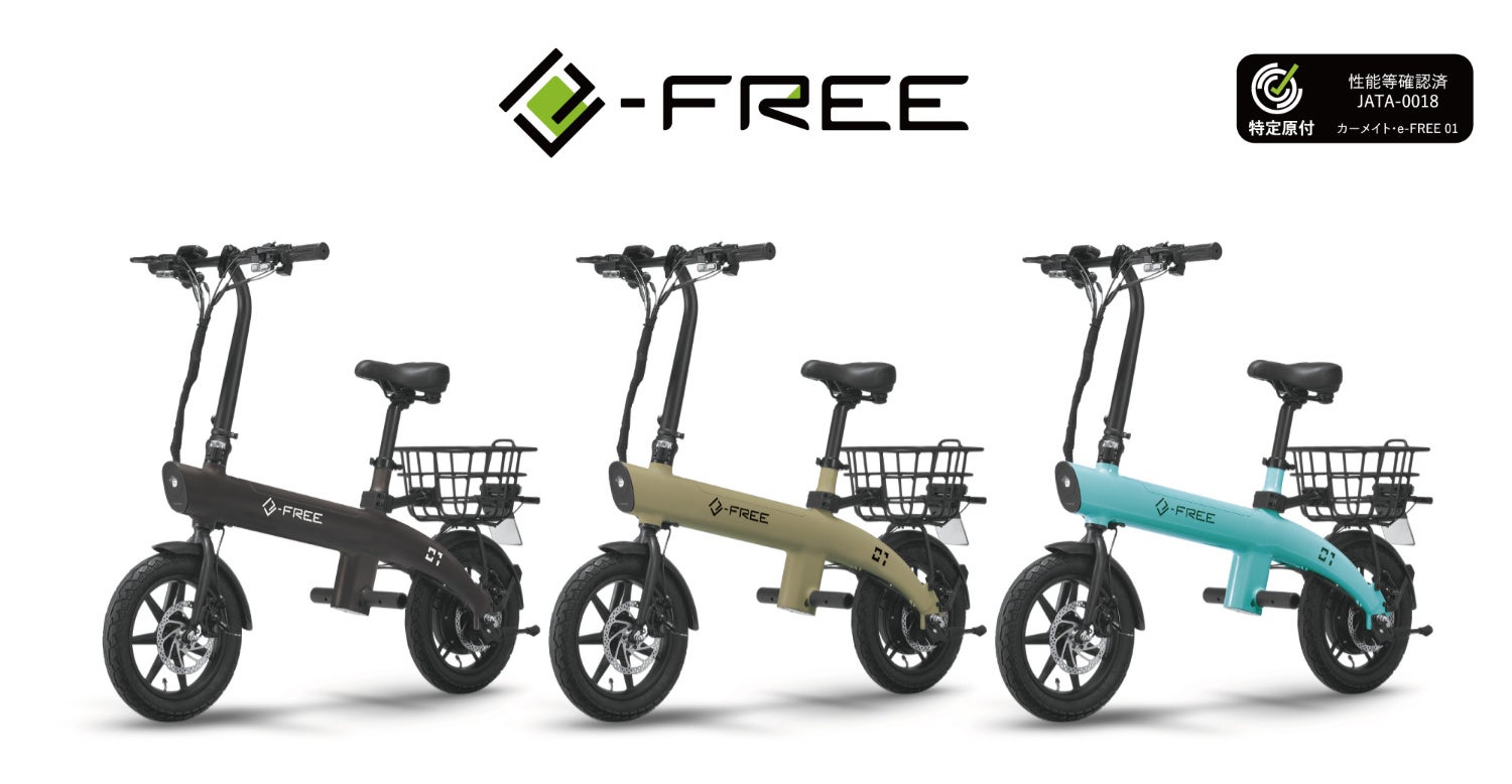 「e-FREE 01」は、2024年1月に当社が発売した特例特定小型原動機自転車。2023年8月に国土交通省の性能等確認制度(国土交通省ウェブサイト)に適合し、サドル付き(自転車)タイプで初の適合車両となったモデルです。 |