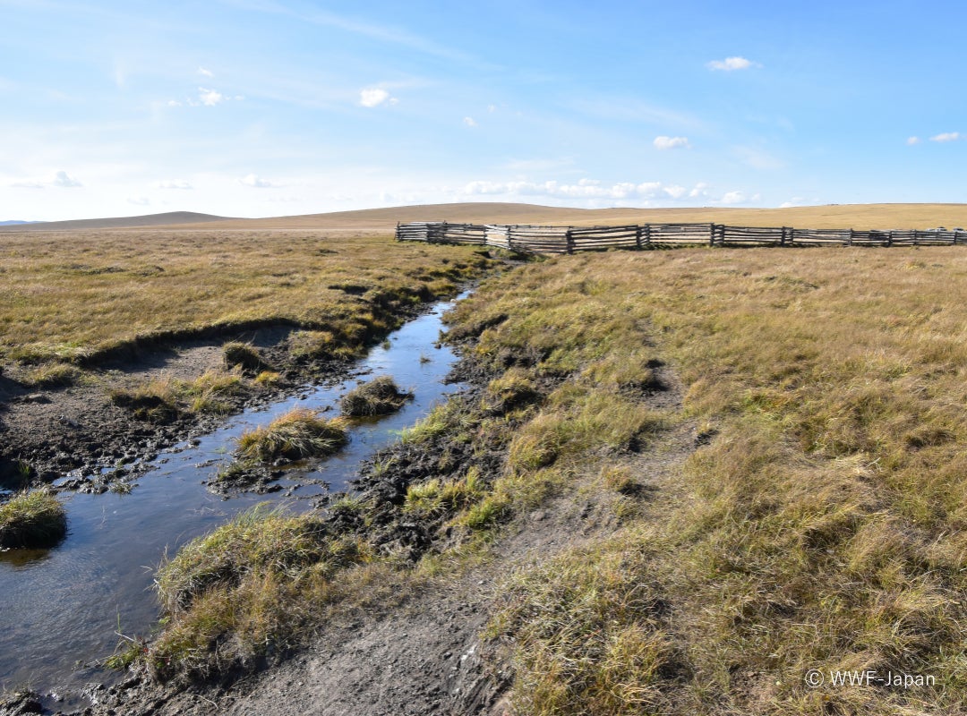 マナヅルを守るには、その繁殖地、越冬地、中継地において適切な生息環境が保たれていることが重要です。WWFジャパンは、日本国内では、鳥インフルエンザのような感染症の拡大を回避するため、地域関係者や自然保護団体の方々と越冬地の分散を図るための検討を実施。2024年4月からはWWFモンゴルが取り組む、繁殖地での調査と保全活動への支援を開始しました。WWFジャパンはWWFモンゴルとともに、家畜や犬によるマナヅルの生息地への侵入を防ぐフェンスの設置といった被害対策や、農家や遊牧民の方々など現地コミュニティに対して、マナヅルと湿地環境の抱える課題の共有などを行なっています。
