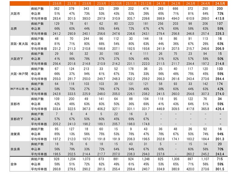 集計対象エリアは首都圏及び関西で、それぞれのエリア別相場情報、需給動向、着工件数等を集計しました。