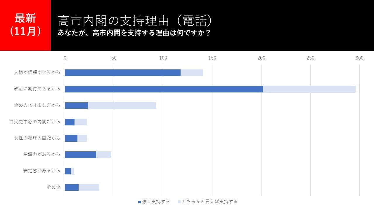 高市内閣の支持理由は「政策」、不支持理由は「自民党」!?2025年11月電話×ネット意識調査