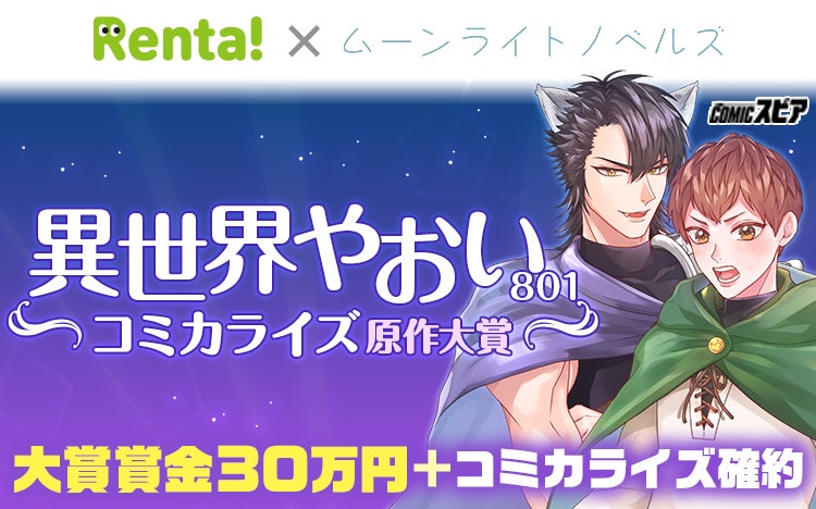 「Renta!×ムーンライトノベルズ」オリジナルレーベル「COMICスピア」異世界801コミカライズ原作大賞を開始!