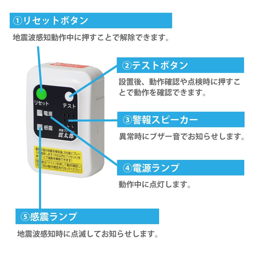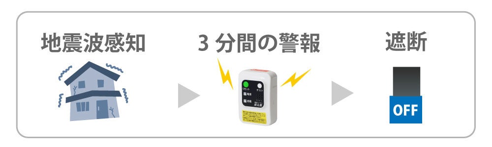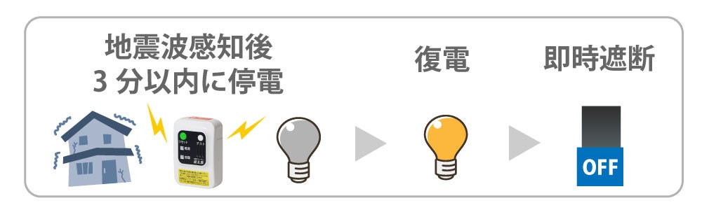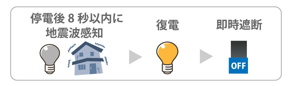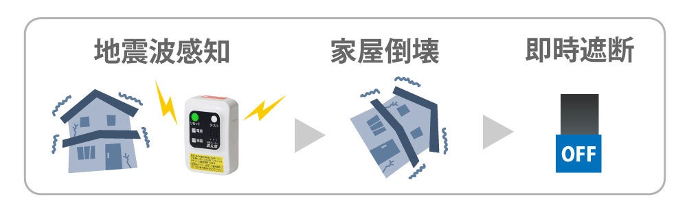 感震ブレーカー「震太郎」はそうした大きな揺れ(震度5強相当)を検知し、主幹ブレーカーを遮断します。