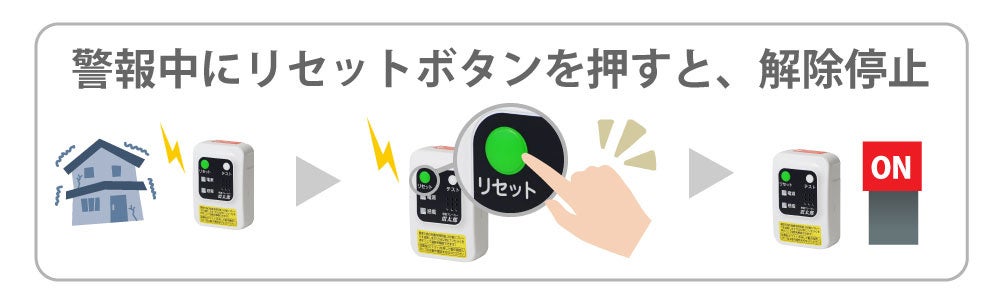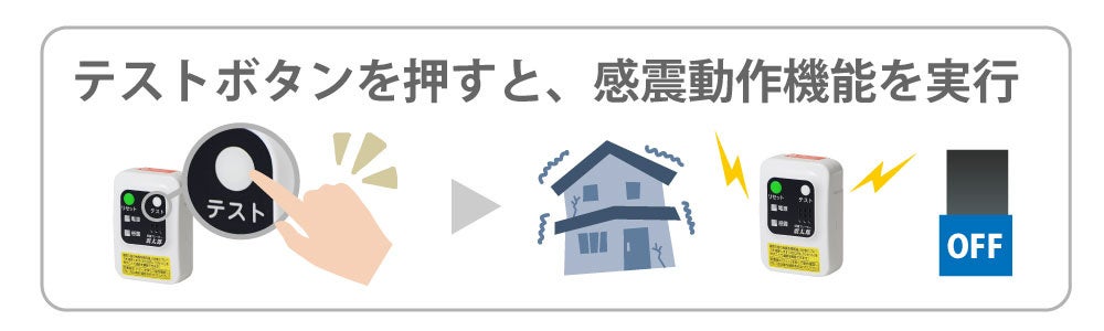アース付コンセントに差し込むだけの簡単仕様で、便利なテスト機能やリセット機能も搭載。 「遅延遮断」「即時遮断」を使い分けることで、状況に応じた柔軟な火災対策が可能です。