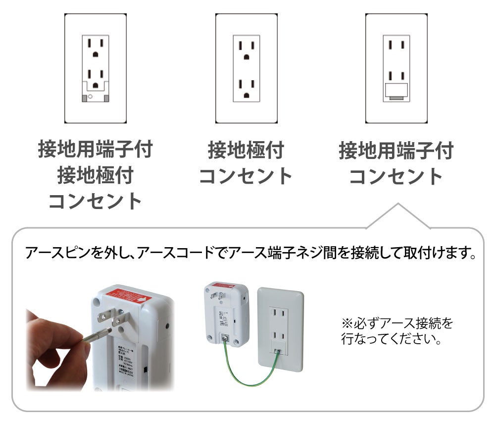 ※適応主幹ブレーカーは「高感度高速形 定格感度電流 30mA以下 漏電ブレーカー」となります。アース付コンセントに差し込むだけの簡単仕様