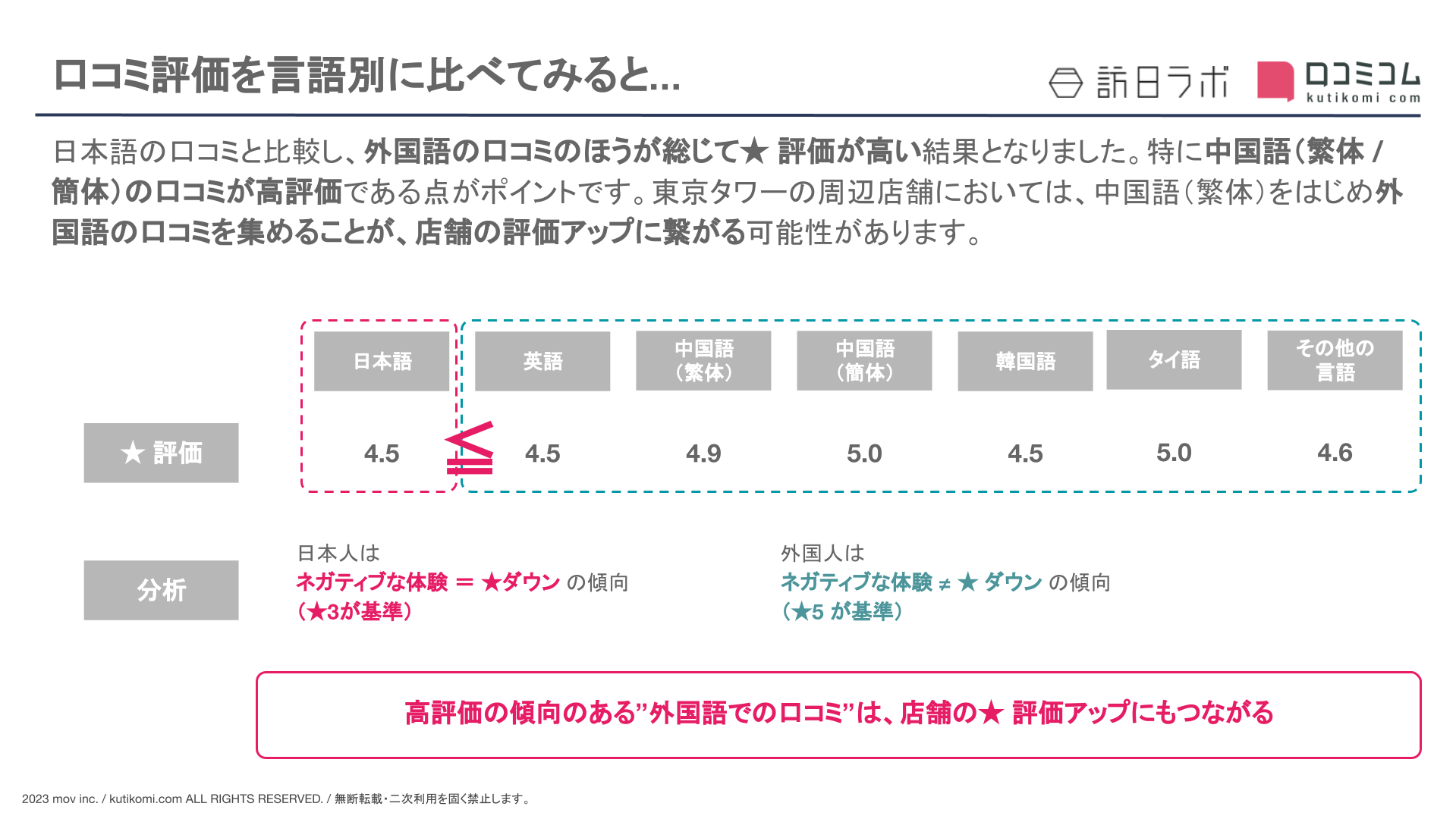 ・口コミ評価は日本語より外国語のほうが高い傾向にあること
