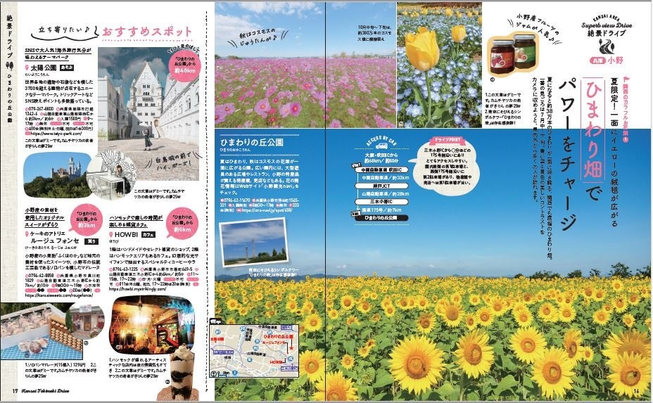ほかにも、道の駅&マルシェ特集や「ドライブウェイの人気展望台」「夕日カフェ」などドライブで行きたいスポットをテーマコラムでまとめて紹介。今さら聞きにくいドライブ時の注意点や、近年増えている「カーシェアリング」の利用方法など、ビギナードライバーにも嬉しい情報が満載です。