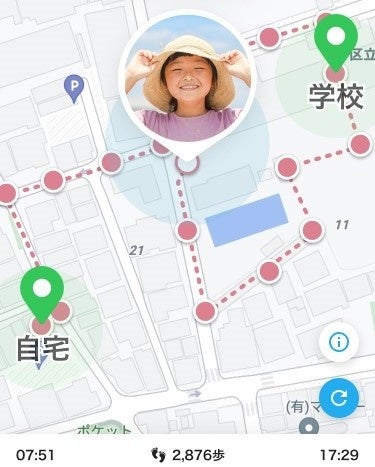 「みてねみまもりGPS」に搭載されたAI(人工知能)が、学校や習い事などのお子さまの「よく行く場所」を自動で学習します。また、学習・登録した場所への出入りを自動検知や、登録した「みまもり範囲」からお子さまが外れた場合、プッシュ通知やメールでお知らせするので、いちいちアプリを起動して居場所を確認する必要はありません。