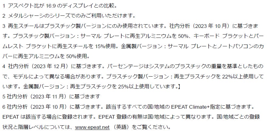 高度な標準:このノートパソコンはENERGY STAR® 8.0認定を取得済み。EPEAT Silverとして登録済みで、EPEAT Climate+指定を取得。EPEAT Climate+指定により、脱炭素に関する業界のベスト プラクティスに対応。[*6]