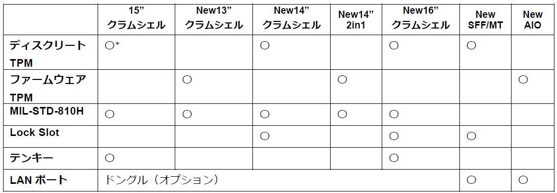 全製品にTPM(ディスクリート/ファームウェア)を標準搭載