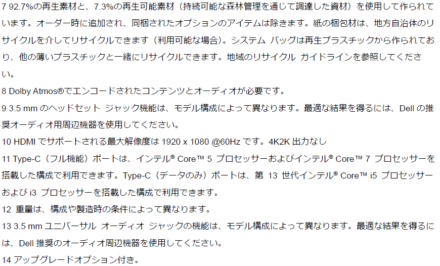 ポートとスロット:SDカード リーダー、ユニバーサル オーディオ ジャック[*9]、USB 3.2 Gen 1 Type-A、ロックスロット、電源ジャック、HDMI 1.4[*10]、USB 3.2 Gen 1 Type-A、USB 3.2 Gen 2 Type-C™(DP/PowerDelivery対応)