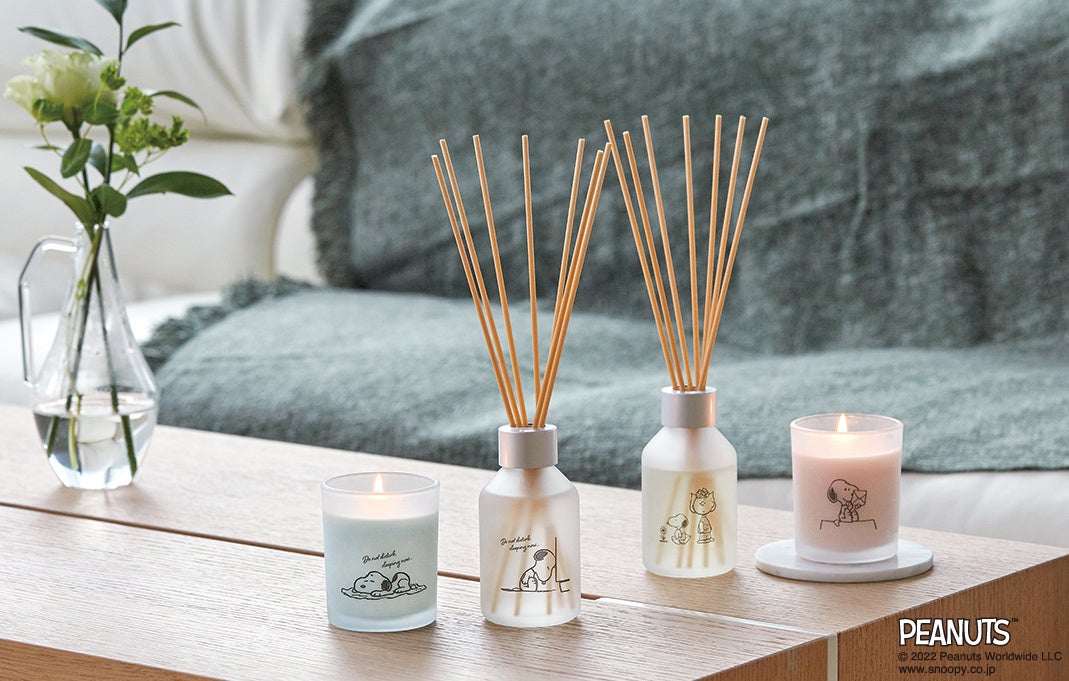【PEANUTS】スヌーピーデザインのリードディフューザーとアロマキャンドルでくつろぎ空間に