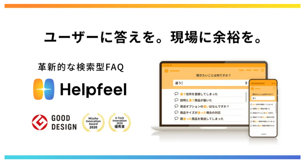 「Helpfeel」は、世界初の独自アルゴリズム「意図予測検索」を搭載した、検索ヒット率98%を誇る検索型FAQシステムです。