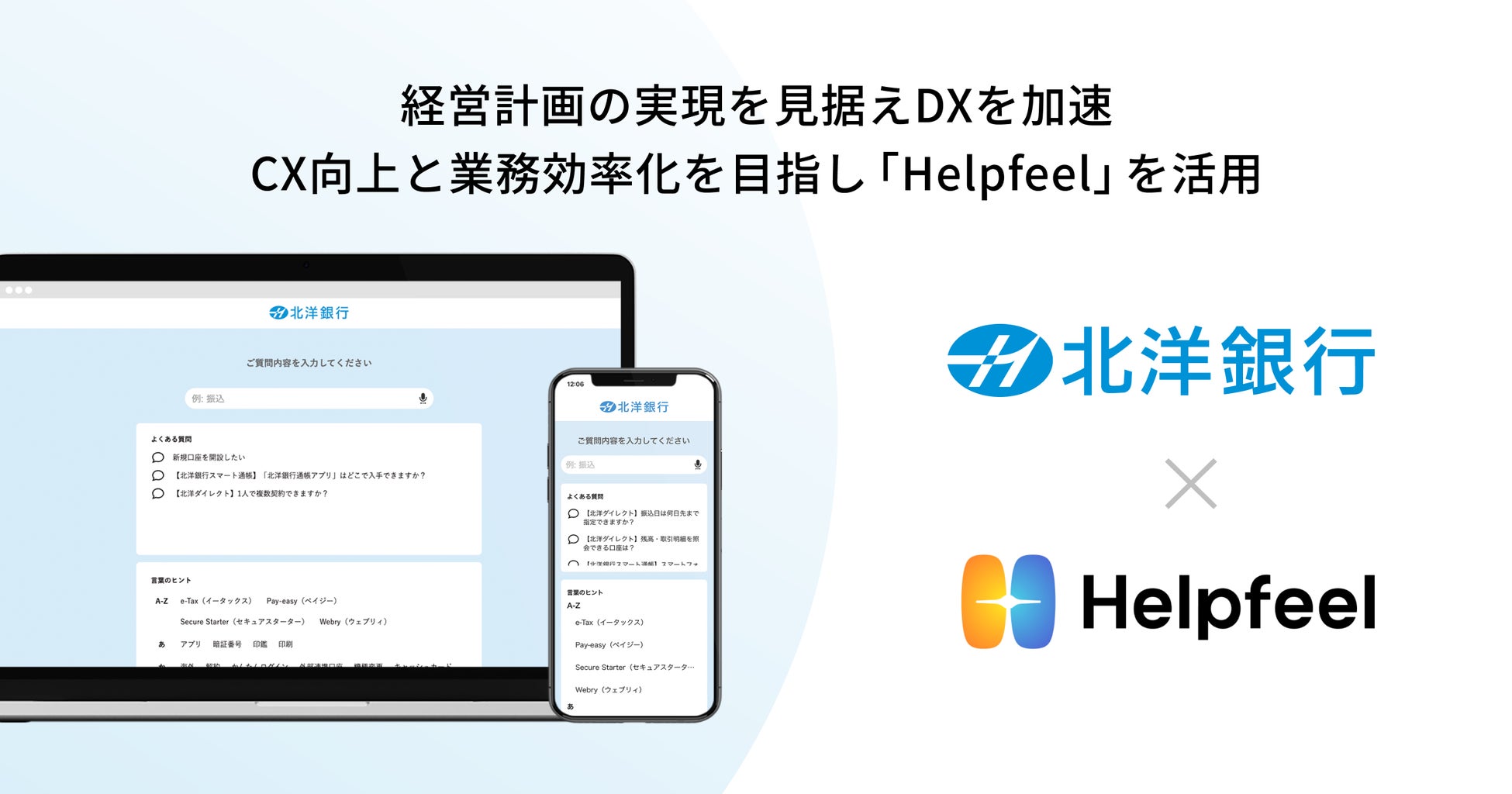 北洋銀行は、地方銀行のWebサイトの使いやすさランキング「Gomez地方銀行サイトランキング」でTop10入りを果たしており(※1)、これまでもデジタルを通じたサービスに定評があり本計画の実現に向けDX化を加速するべく、検索型FAQ「Helpfeel」を採用いただくこととなりました。