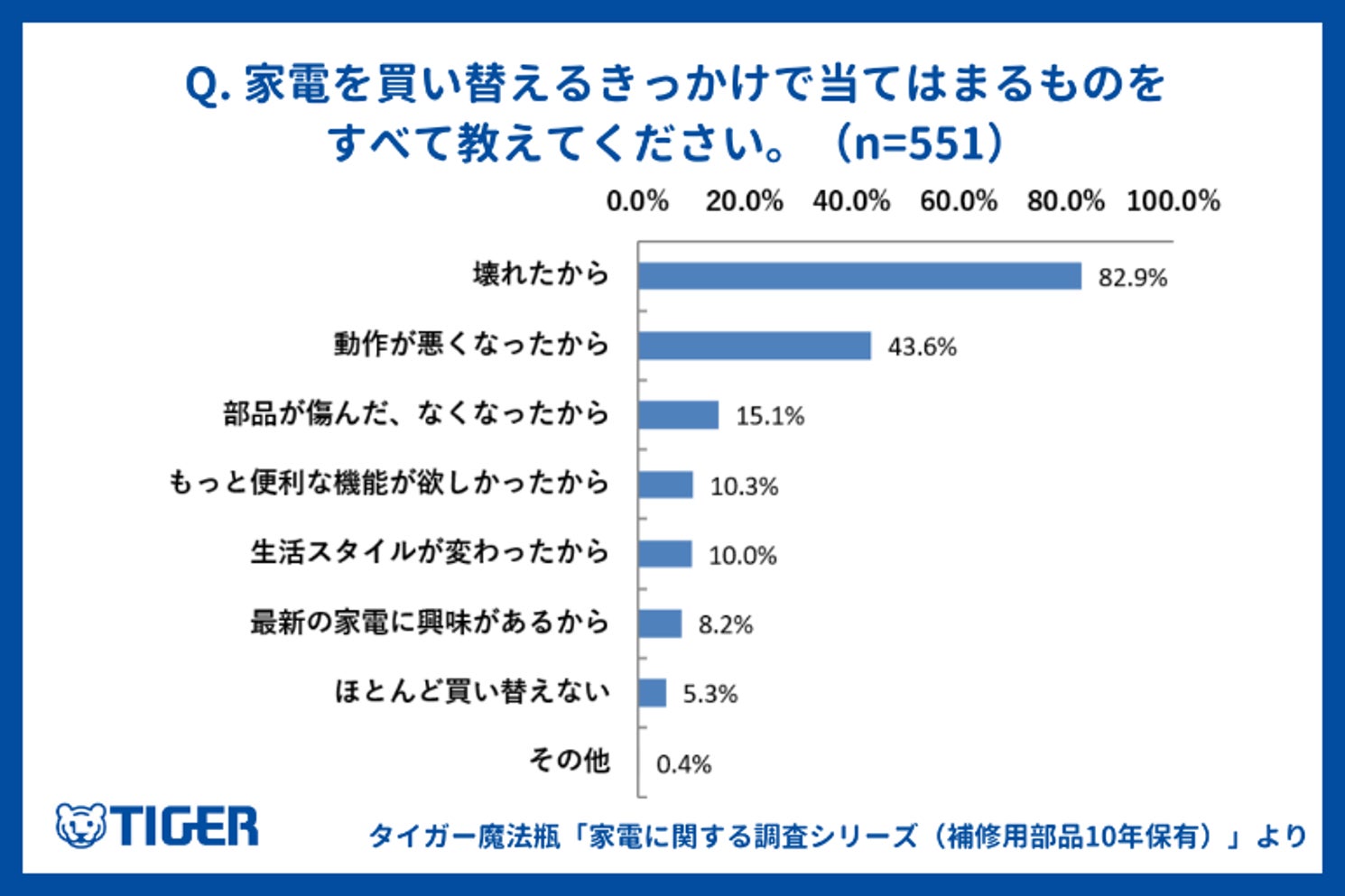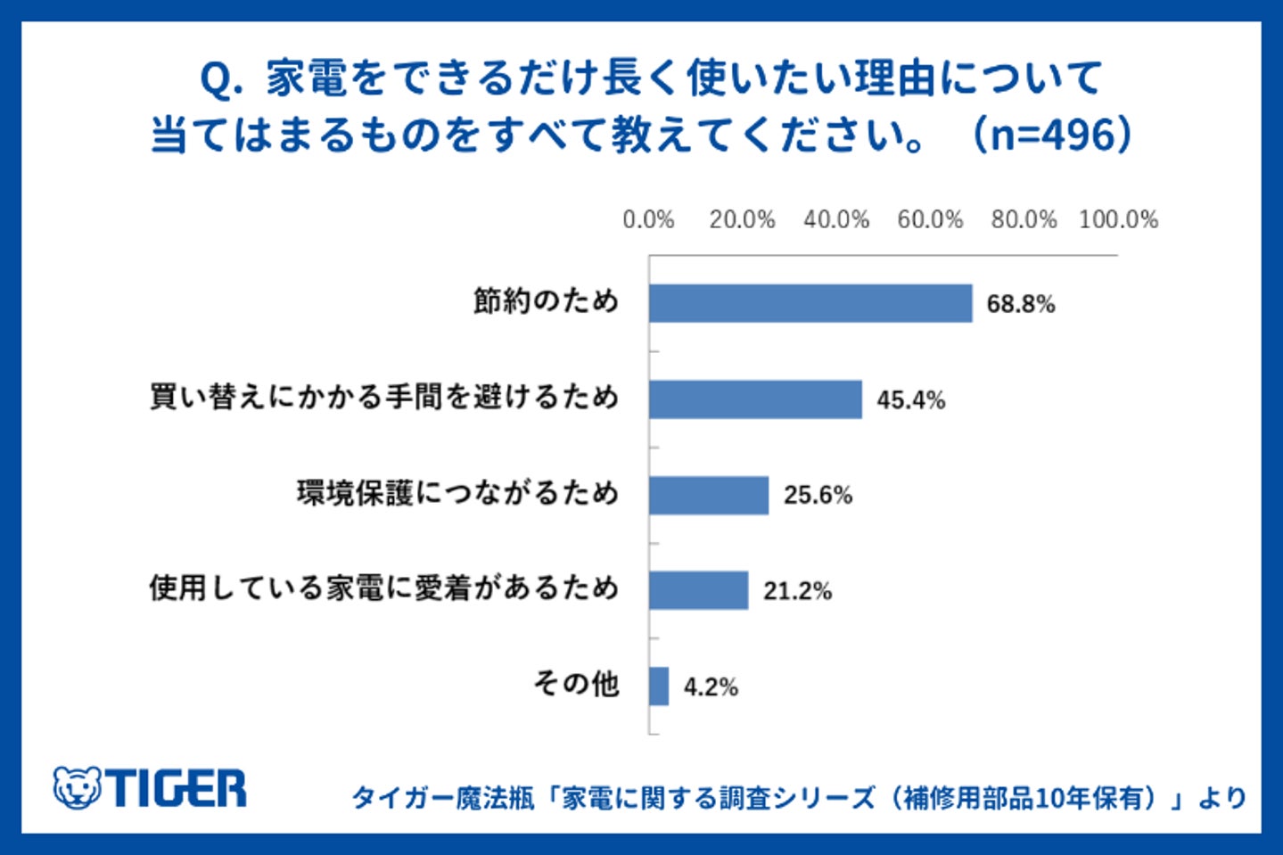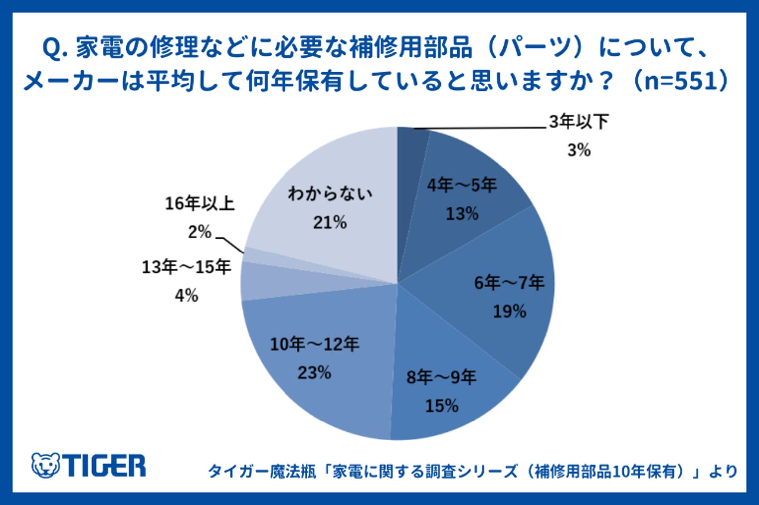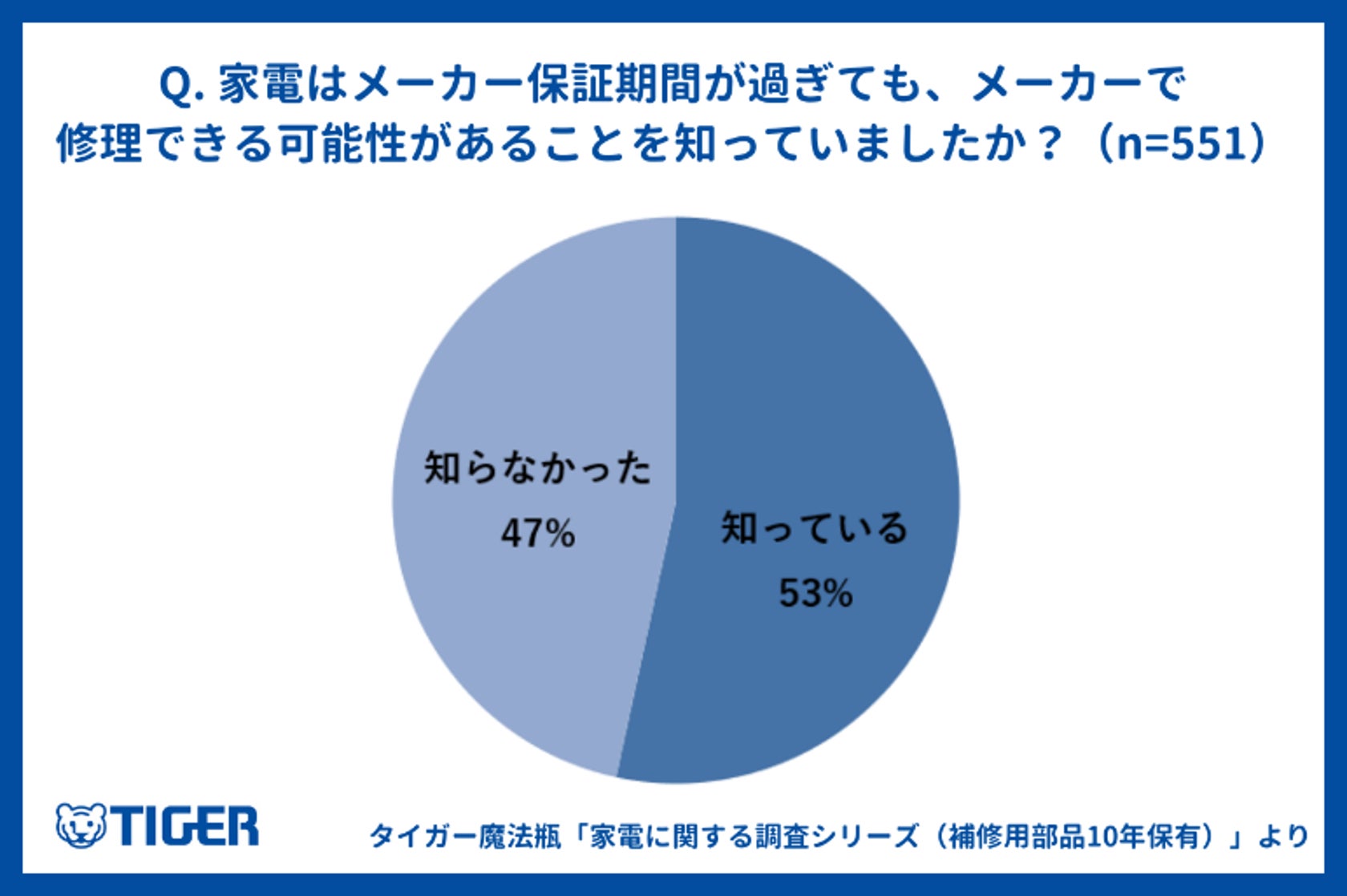 タイガー魔法瓶・家電に関する調査シリーズ (補修用部品10年保有) vol.3 保証期間を過ぎても修理できる可能性があることを約半数近くが知らないという結果に