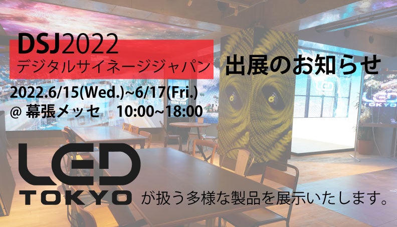 2022年6月15日(水)~6月17日(金)の3日間幕張メッセで行われます「DSJ2022 デジタルサイネージジャパン」にLED TOKYOが出展します。