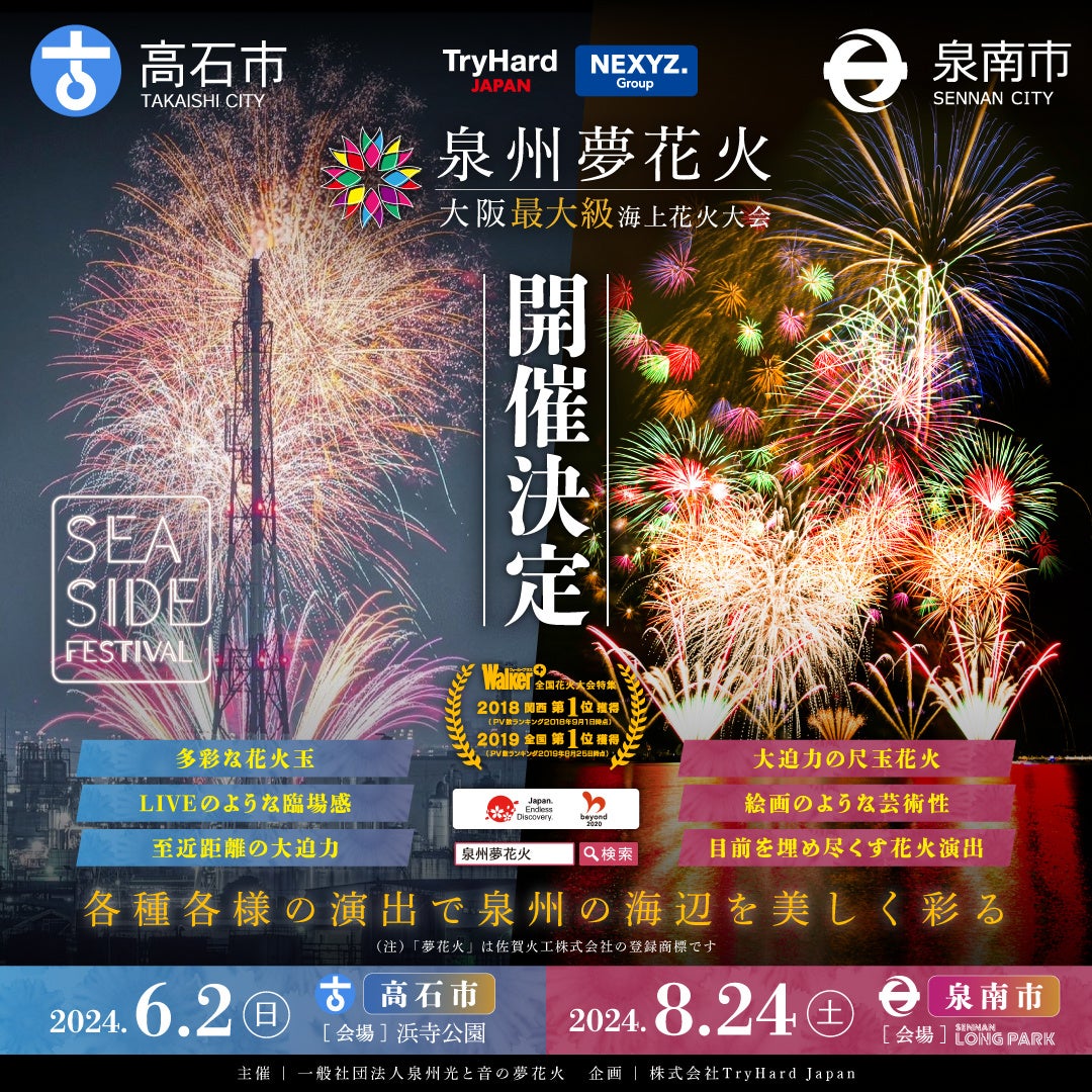 国土交通省観光庁、文化庁、環境省、経済産業省、大阪府、大阪市、堺市、泉南市、和泉市、高石市、泉大津市、貝塚氏、泉佐野市、岸和田市、阪南市、忠岡市、田尻町、熊取町、岬町、神戸市、大和リース、福岡ソフトバンクホークス、JTB、KDDI、ローソンエンタテインメント、キリンビール、サッポロビール、コカ・コーラボトラーズジャパン、レッドブル・ジャパン...and,more