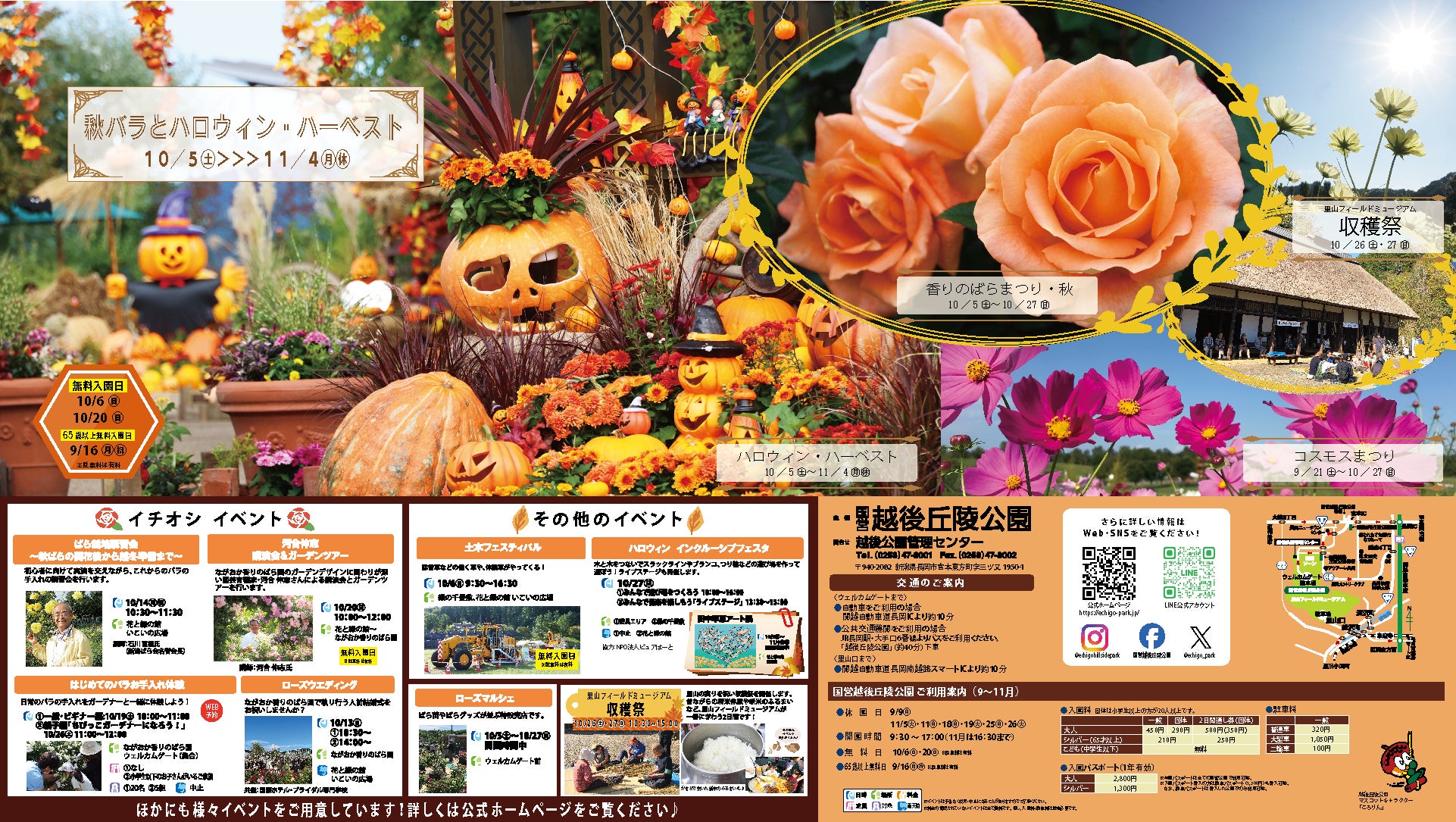 秋バラとハロウィン・ハーベスト開催(国営越後丘陵公園)