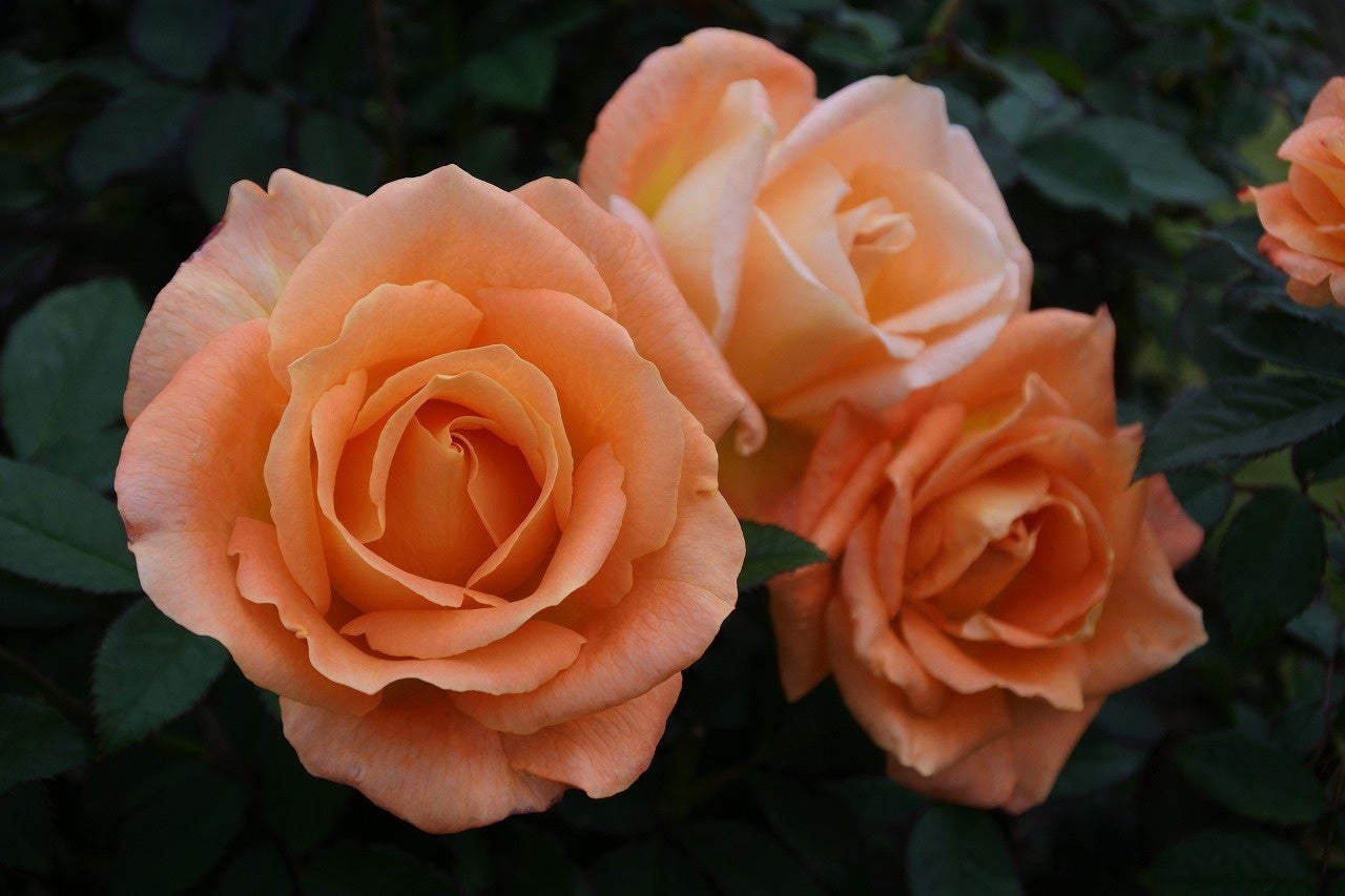 秋バラは秋の気候に合わせてゆっくり開花するため、1日中香りが楽しめ、花の形・色がよく、深い色合いが特徴です。
