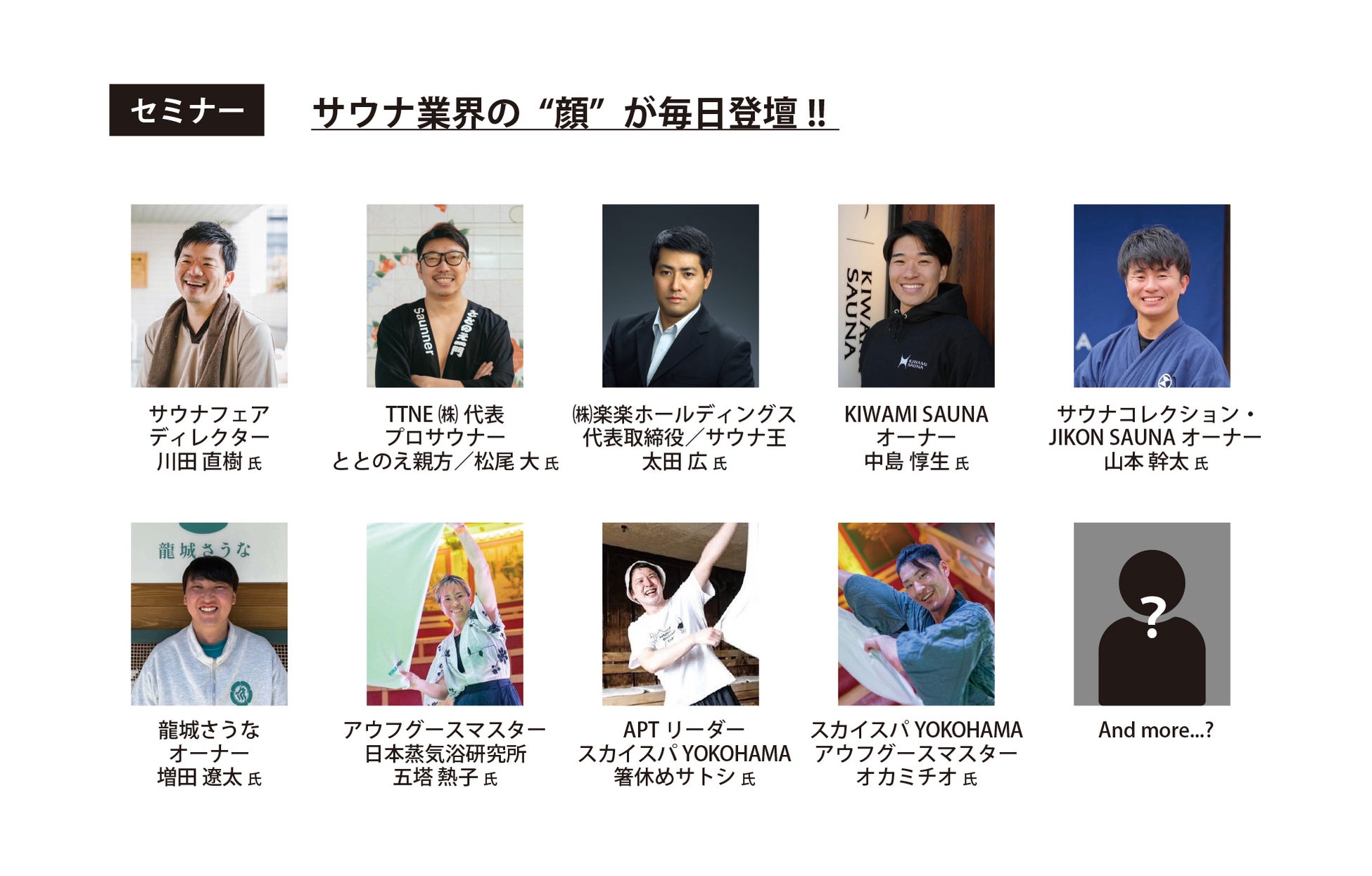 サウナフェア内にセミナー会場と商談スペースを兼ね備えたラウンジ「サウナフェス」を新設します。サウナセミナーでは毎日、業界のトップランナーが登壇します。