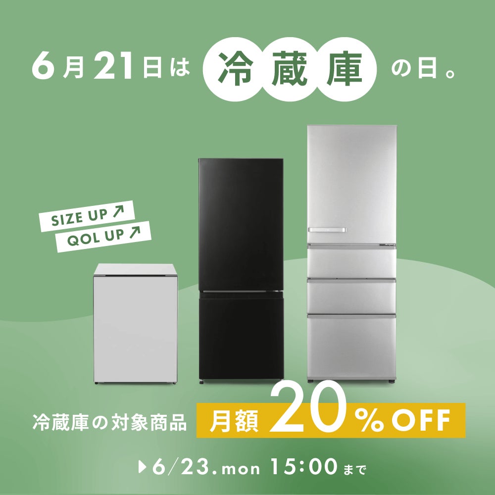 【6月21日は冷蔵庫の日。】冷蔵庫の対象商品 月額20%オフ