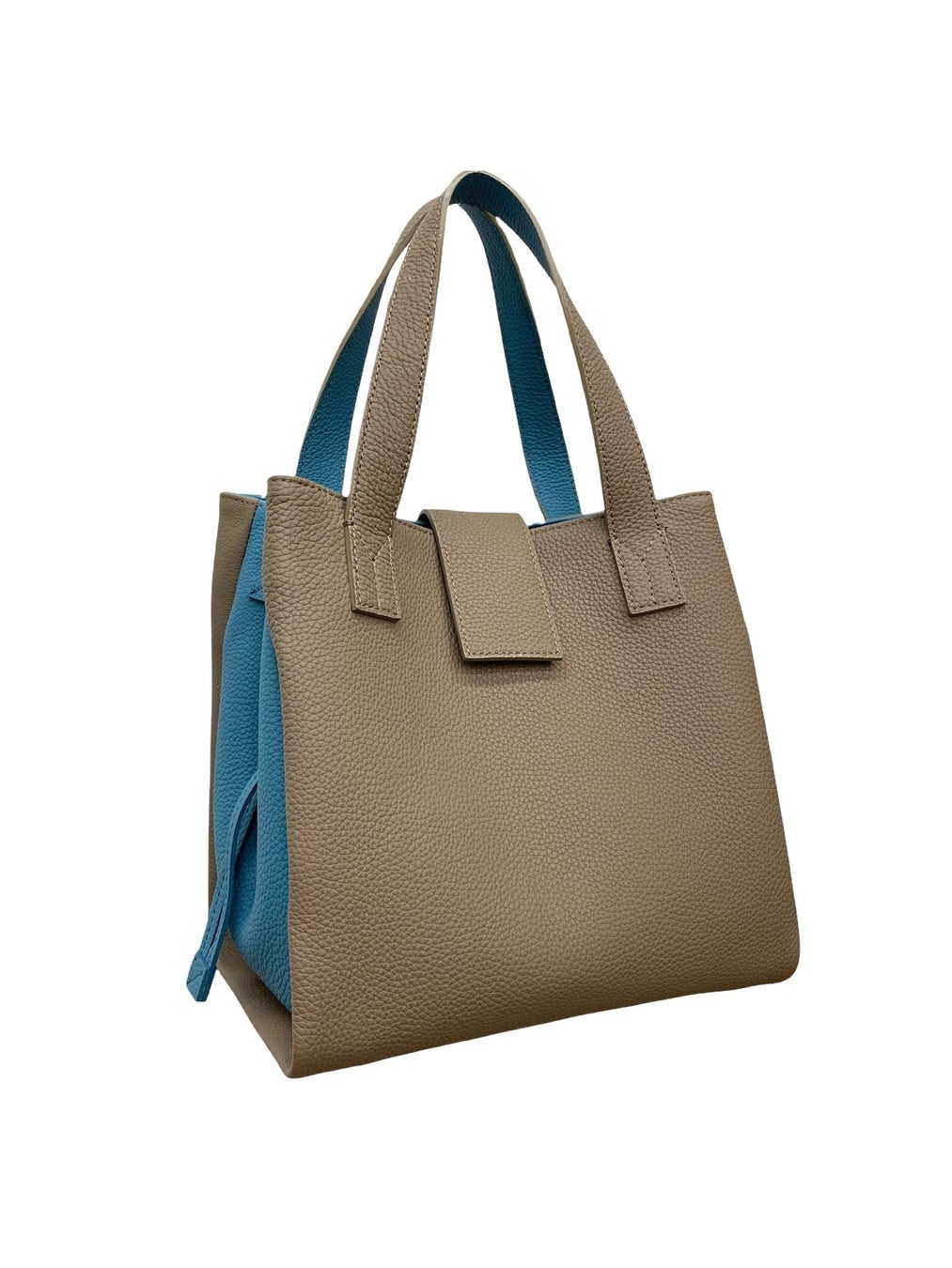 残レザーのベージュとターコイズで構成された「ラティス」。各サイズピエス・ユニック(1点物)のコレクションは、阪急うめだ本店の期間限定ストアのみで入手いただけるごく特別なアイテムです。