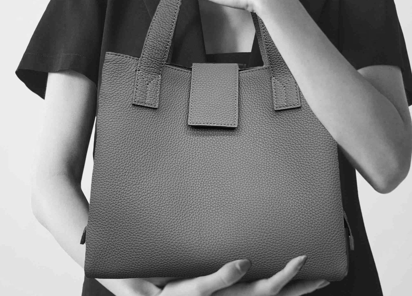サイドのマチを外側に出すとユニークな造形になり、且つ収容力が高くなる機能性と造形美を兼ね備え、ミニマルにタイムレスな魅力を放つ「ラティス」。