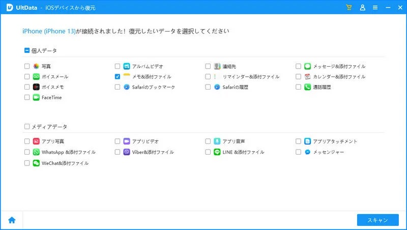 iPhoneデータ復元 - UltData は新バージョンに更新しました。今回はiPhoneメモ復元機能を最適化しました。