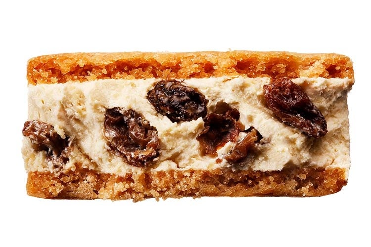 ふわっと軽いバタークリームの中に、ラム酒に漬け込んだ小粒のレーズンを混ぜ込んだ王道のフレーバー。レーズンの種類や漬け込み期間にこだわった、自家製ラムレーズンがおいしさの決め手。クッキーの香ばしさとラム酒の香りが口いっぱいに広がり、すっと軽やかに溶けていくバタークリームが幸せな余韻を残します。
