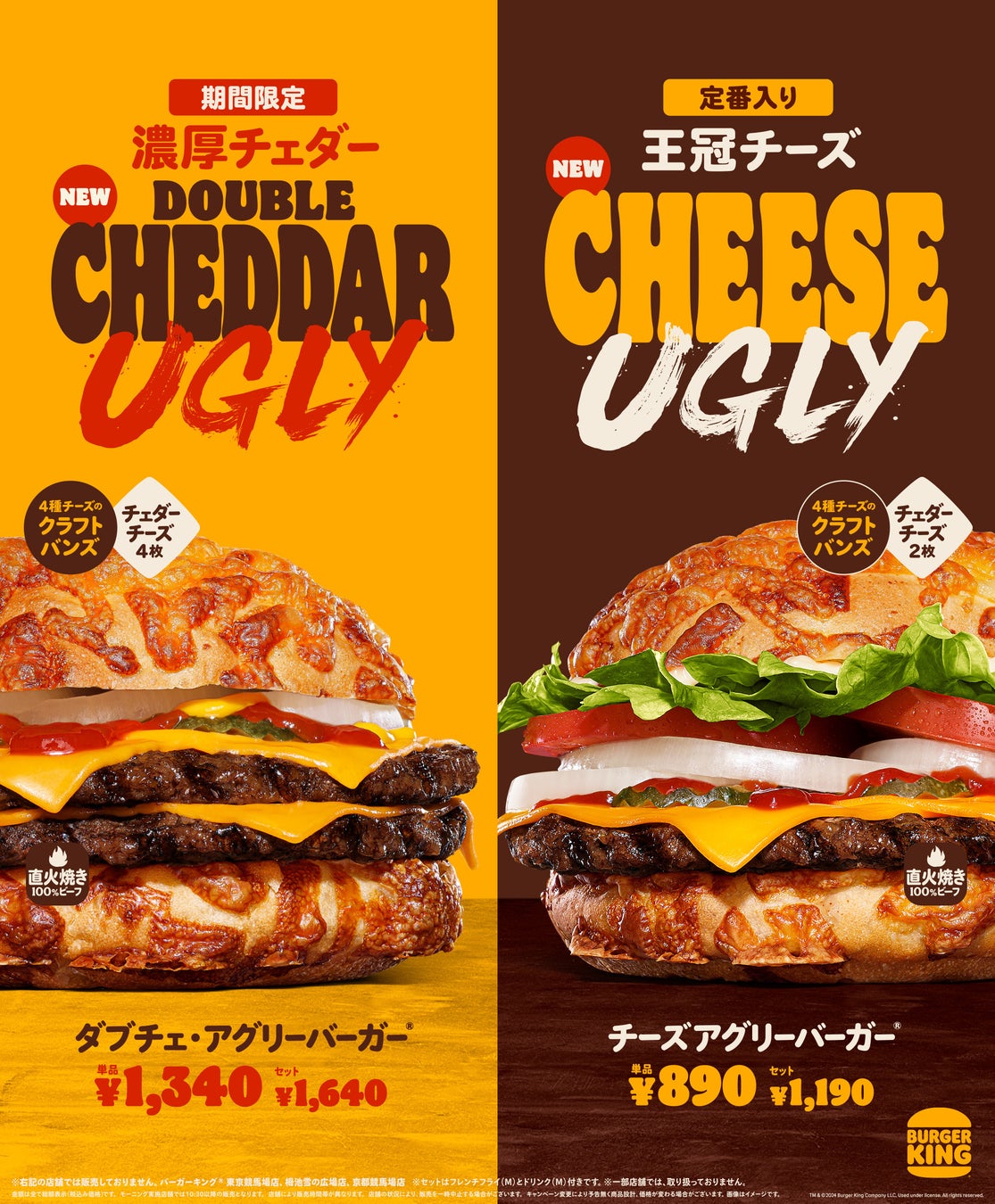 バーガーキング® のこだわりぬいた人気シリーズ「アグリーバーガー® 」から期間限定「ダブチェ・アグリー」登場&「チーズアグリー」待望の定番入り!4種チーズのクラフトバンズ×ジューシーな直火焼きビーフ