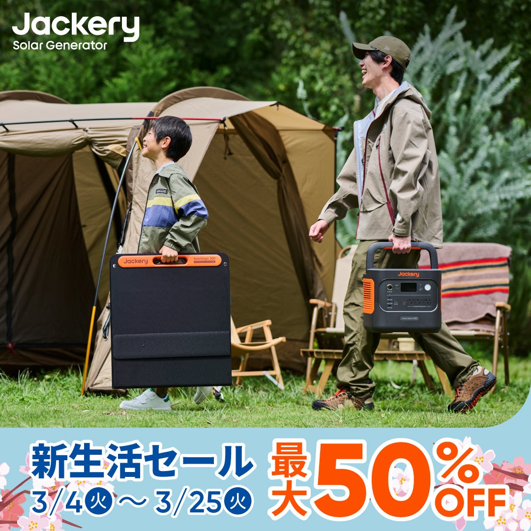ポータブル電源・ソーラーパネルの世界的リーディングカンパニー・Jackery(ジャクリ)の日本法人である、株式会社Jackery Japan(本社:東京都中央区)は、本日3月4日(火)~3月25日(火)の期間中、Jackery公式オンラインストアならびに楽天市場店において、Jackery人気製品を最大50%OFFでご購入いただける新生活キャンペーンを開催します。