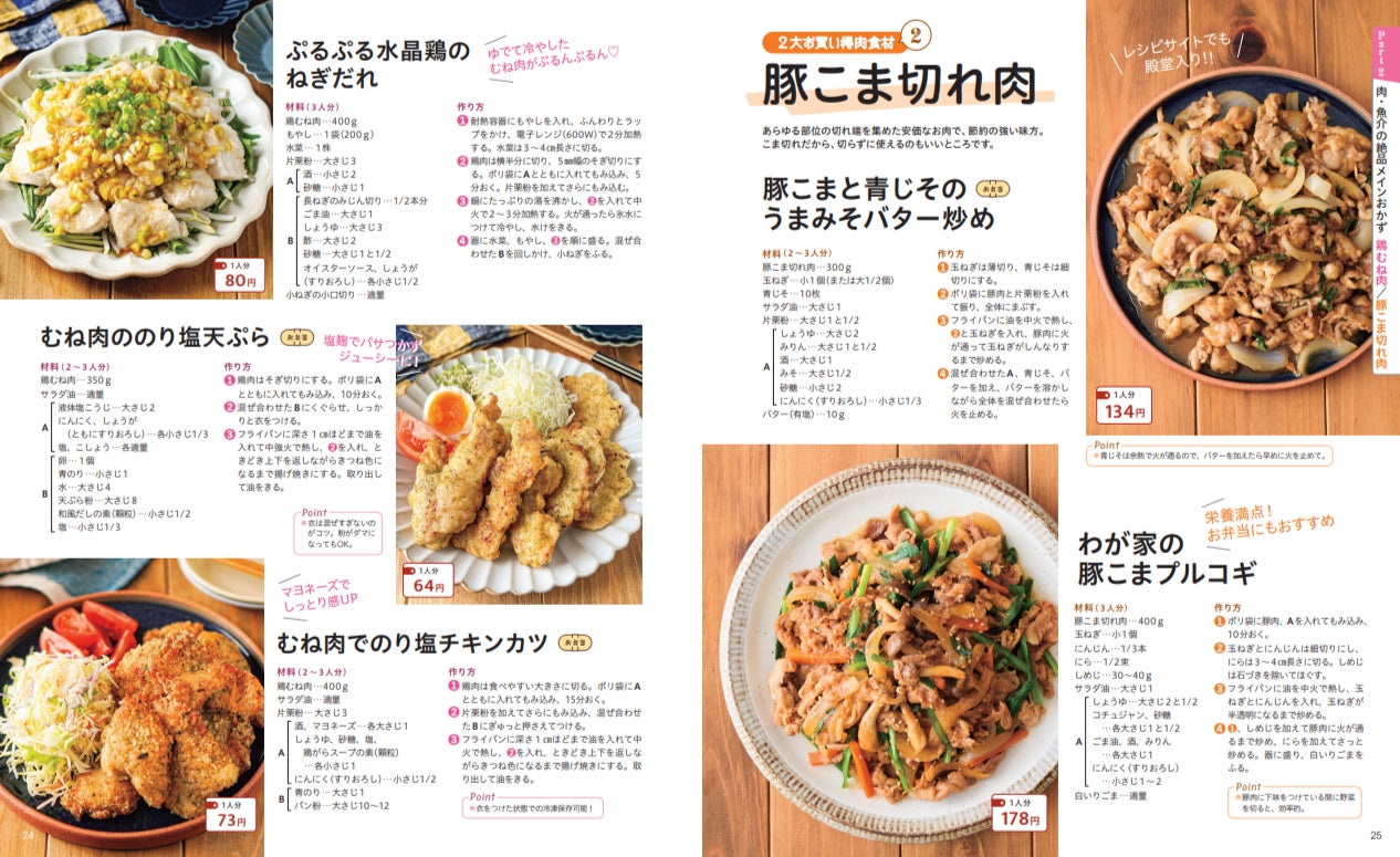 本書には、物価高にうれしい「節約お肉おかず」も多数掲載しています。本プレスリリースではその中から、お気に入り数1000以上の大人気殿堂入りレシピ3品をピックアップしてご紹介いたします。