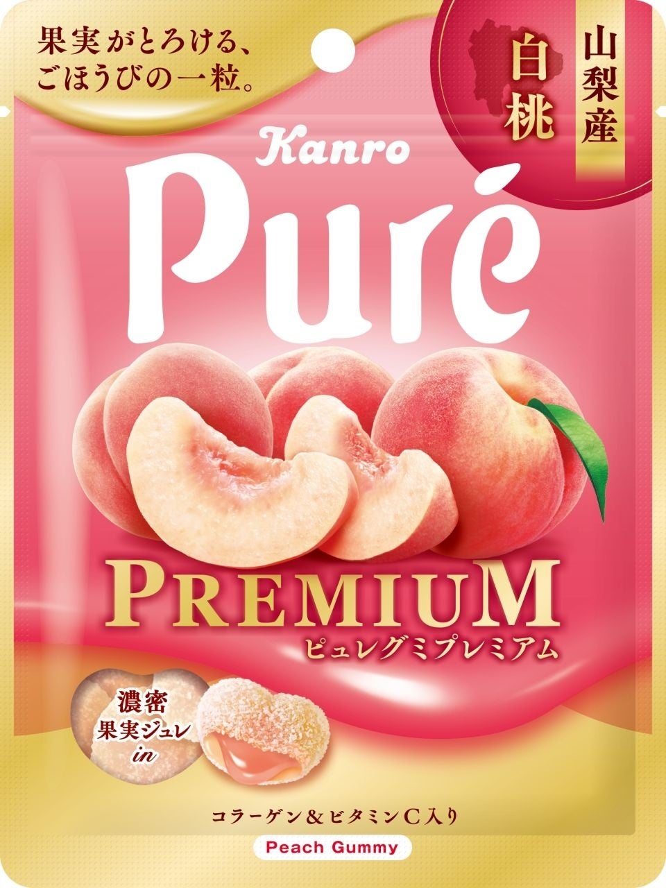 産地にこだわった贅沢な果実の味わいで、ごほうびの一粒! カンロ「ピュレグミプレミアム 山梨産白桃」新発売 濃密果実ジュレが入ったとろける味わい