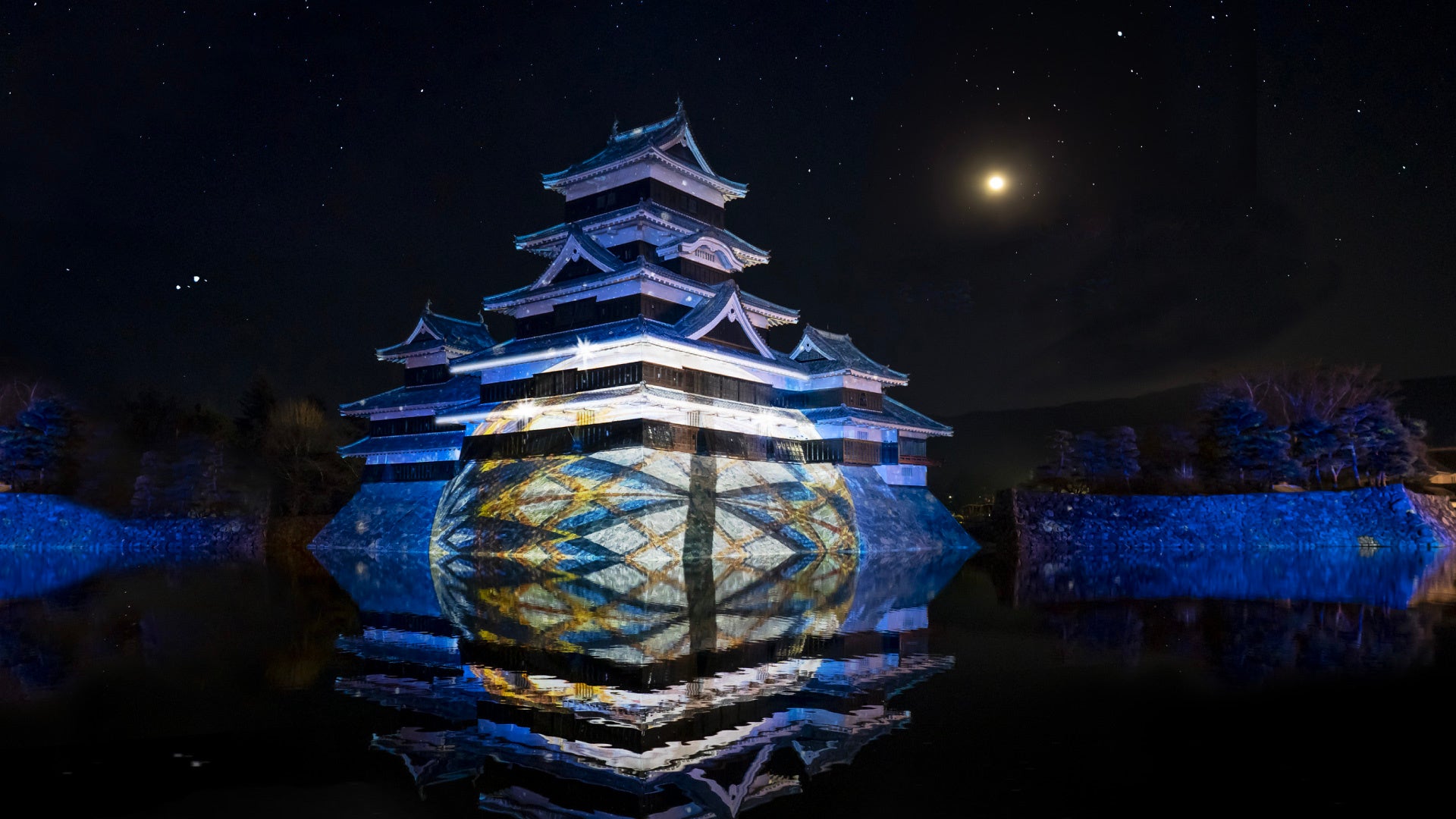 この催しは、現存国宝5天守の一つで五重六階の天守の中で最古の国宝 松本城の天守や石垣に、葛飾北斎や歌川広重による信州ゆかりの浮世絵や豪壮な天守を築いた松本城主・石川数正が描かれた屏風絵が立体的に躍動するデジタルアニメーション、松本てまりや深山織、藍染めなど松本市ならではの伝統工芸をモチーフとしたデジタルアート、春に咲き誇る北アルプスの花々など、ダイナミックで幻想的なプロジェクションマッピング映像を投影します。