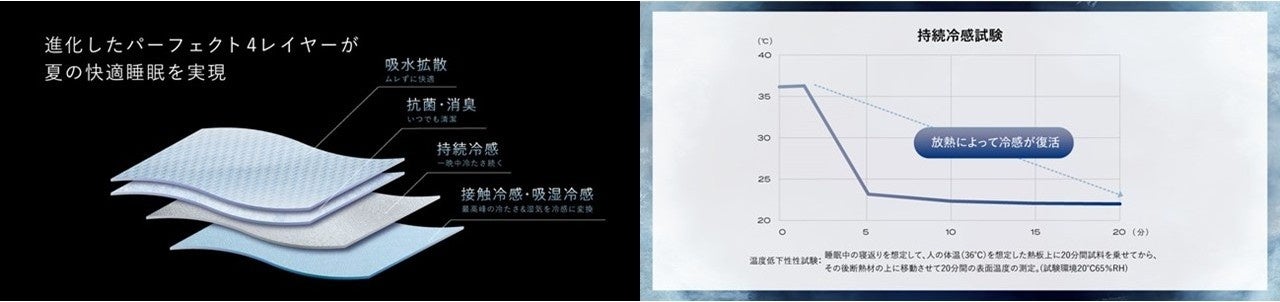 パーフェクト4レイヤー構造が、接触冷感・吸湿冷感・持続冷感を実現して、睡眠中も快適に。