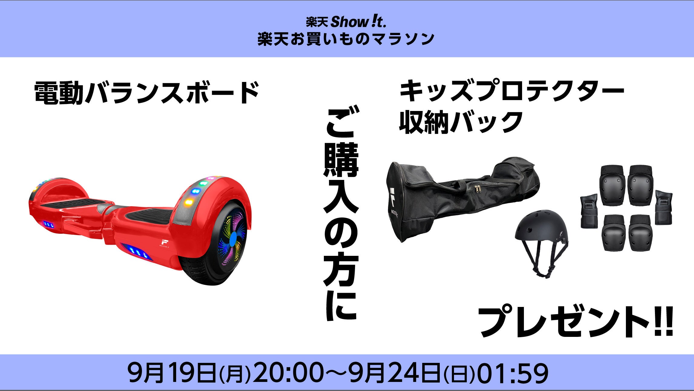 楽天市場「Show !t」9月19日(月)20時開始、電動バランスボード購入で10,000円相当のキッズプロテクターと収納バックをプレゼント。ポイント10倍の楽天お買い物マラソンに参加。