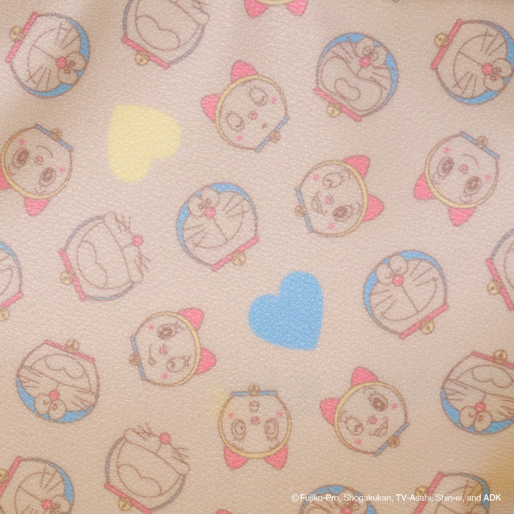 表情豊かな「ドラえもん」と「ドラミ」の総柄デザインがかわいい落ち着いた色味で大人女性にもぴったりなアイテム。