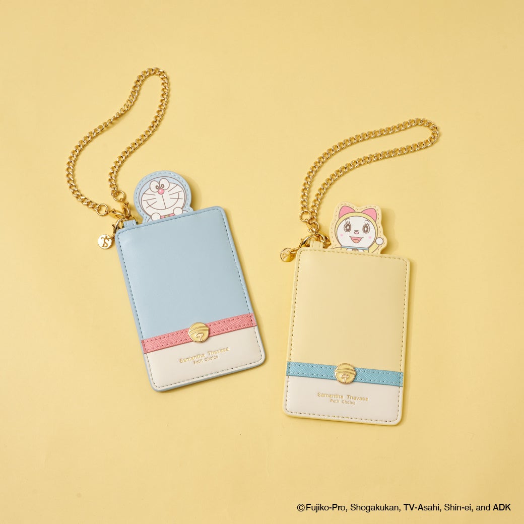 「ドラえもん」の世界観をサマンサタバサプチチョイスらしいパステルカラー革小物が登場。お財布はフロント部分に「ドラえもん」と「ドラミ」の鈴モチーフを落とし込んだキュートなデザイン。アイコンの鈴が立体的なプレートで表現したワンポイントに。