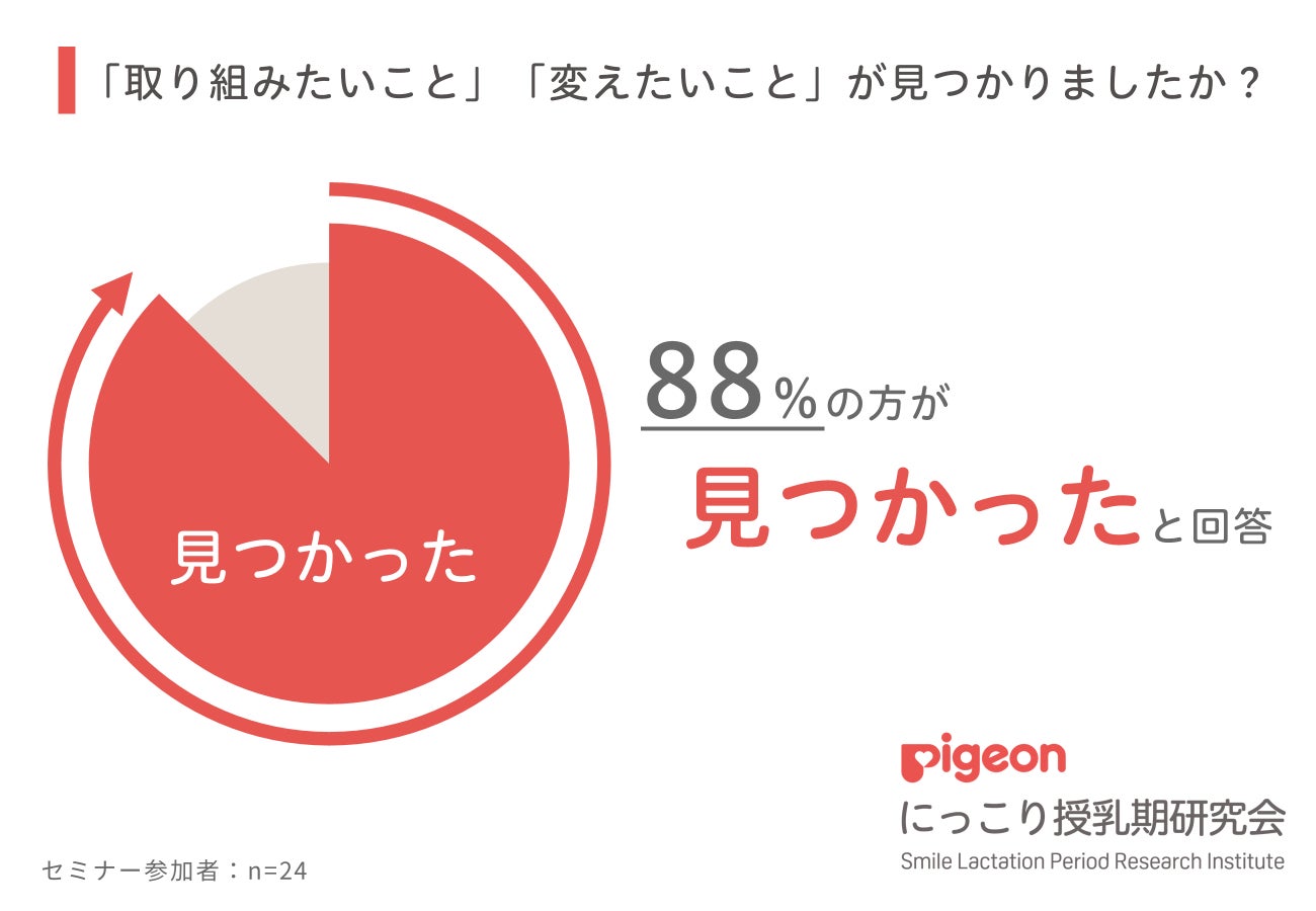 参加者へ実施したアンケート(※3)では、「本セミナーを受け、明日からの自身の母乳育児支援で『取り組みたいこと』『変えたいこと』が見つかった」と回答した医療従事者が88%に上りました。母乳ケアの方法を模索・見直している方にとって、本セミナーが今後の支援のあり方を考えるための一助となったことが伺える結果となりました。