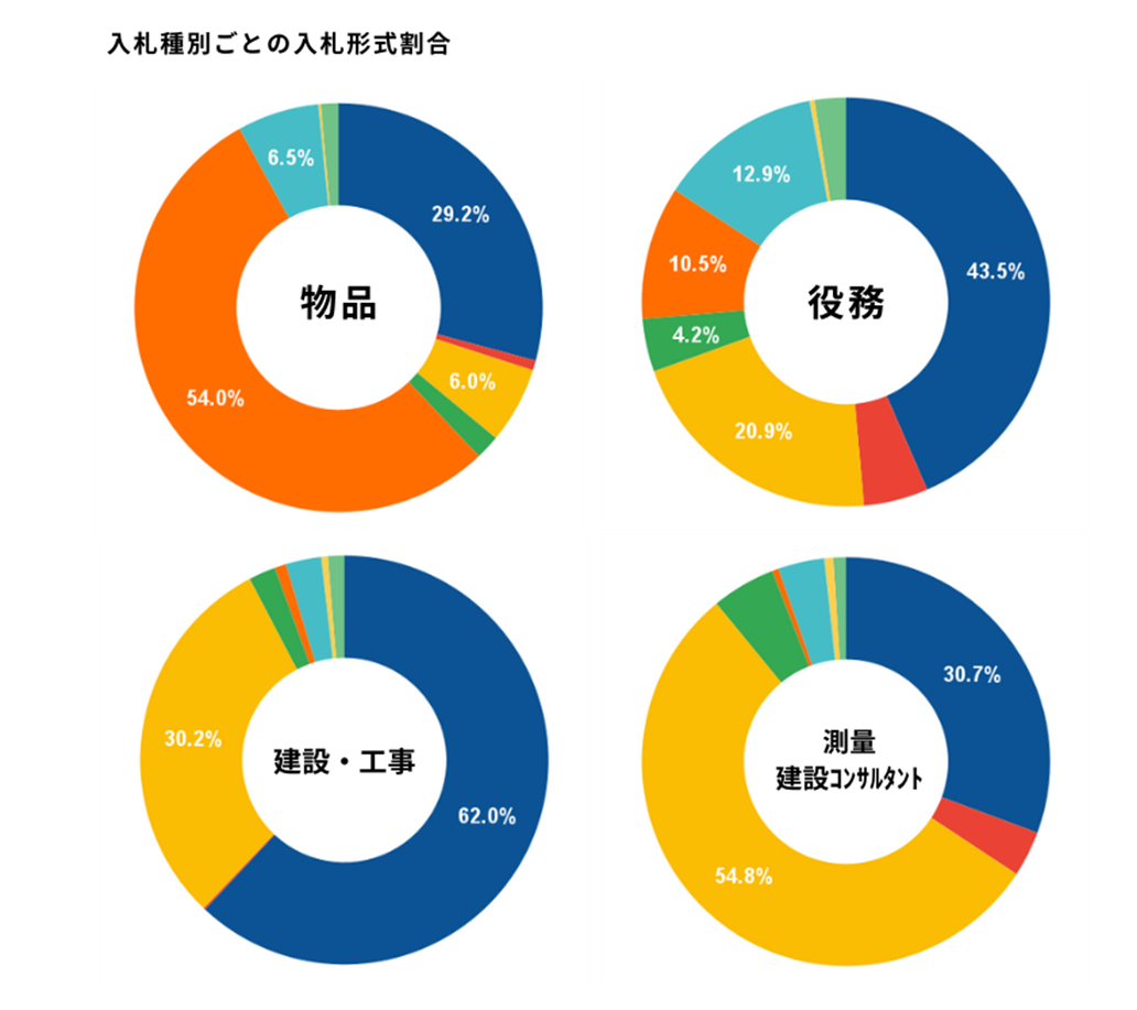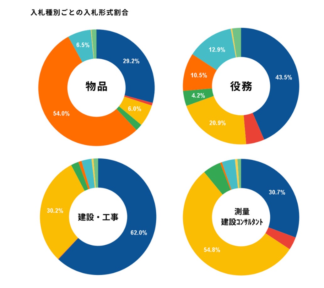 建設では、「一般競争入札」を含む競争性のある入札形式が合計95%以上を占めており、公平性と透明性が重視されているようです。