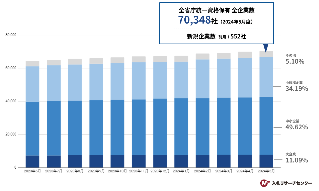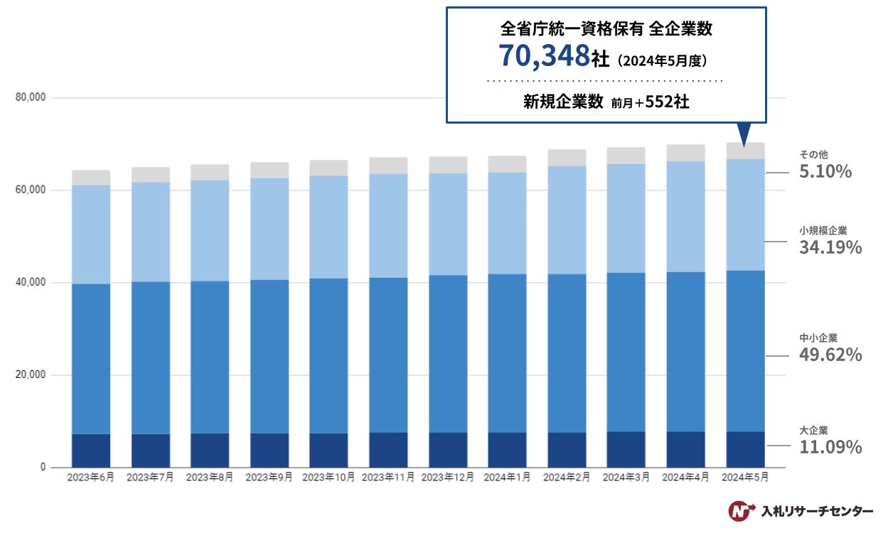 全省庁統一資格保有【全企業数】 : 70,348社(2024年5月度)