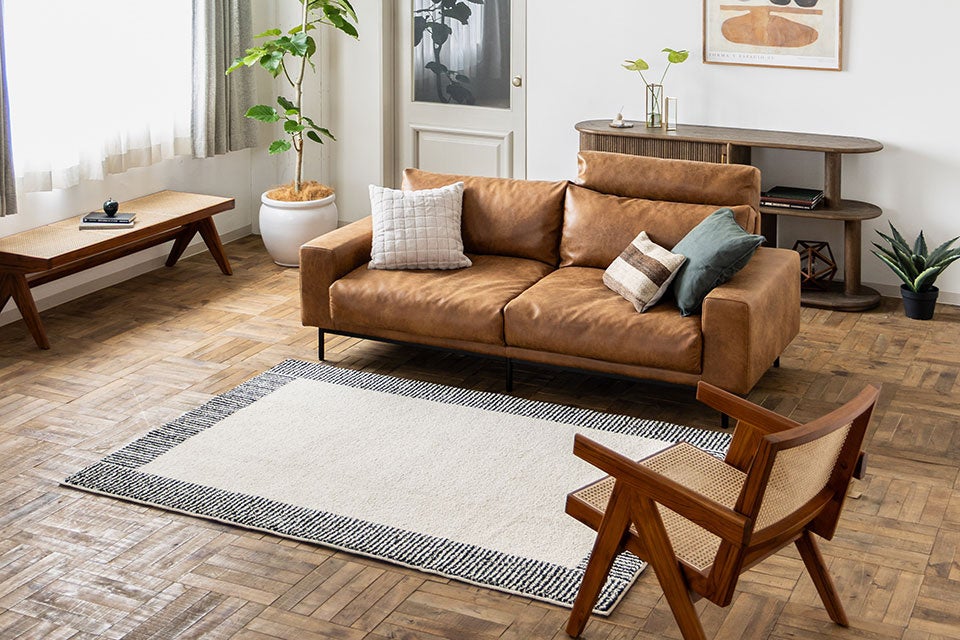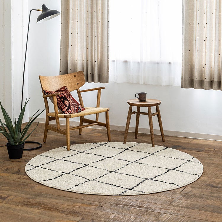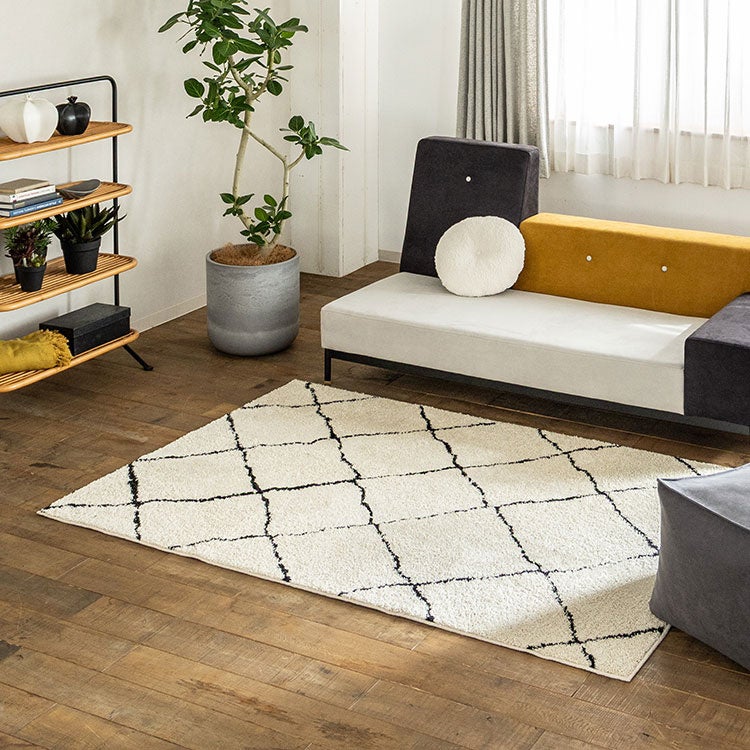 モロッコの伝統的なラグ「ベニワレン」をモチーフに、現代の暮らしにフィットする新作ラグが誕生しました。ホワイト(アイボリー)のベースにブラックのラインを配した明快なコントラストが特徴で、北欧、モダン、ナチュラルなど幅広いインテリアテイストに調和します。