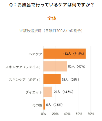 お風呂で行っている美容ケアは“ヘアケア”が圧倒的多数!