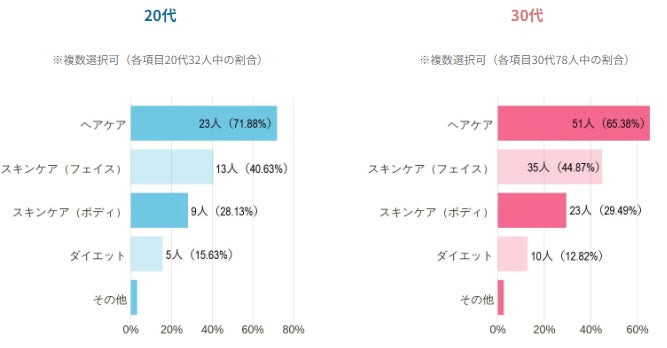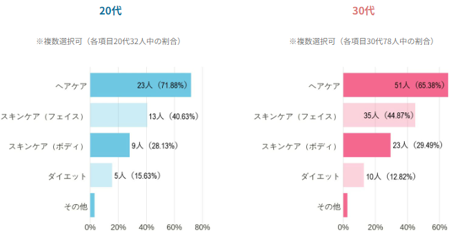 30代はお肌の曲がり角とも言われ、肌の美しさが保てるか保てないかの分かれ道でもあるため、特に気にしてケアを行うかたが多いと見られます。