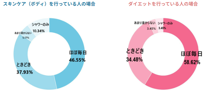 行っている美容内容別で見てみると、ダイエットをしている人の場合は“ほぼ毎日浸かる”という人が6割近くと、他の美容法を行っている人と比較して多いことがわかりました。