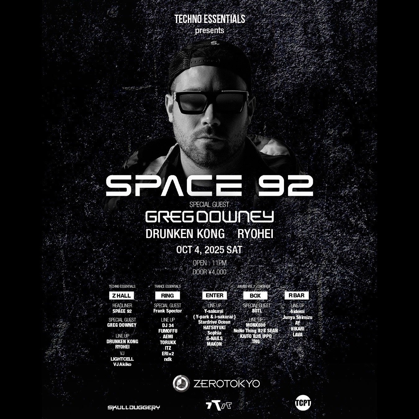 2025.10.4(土) TECHNO ESSENTIALS presents SPACE 92 feat. GREG DOWNEY