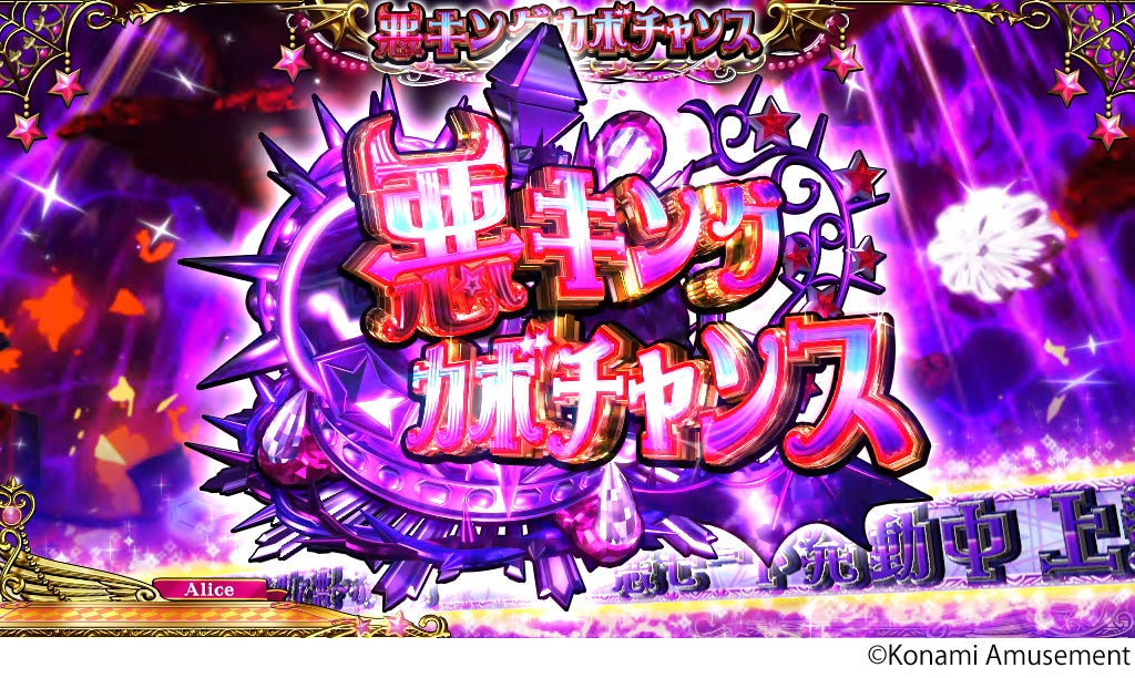 そして「悪」に次ぐ新状態として「極モード(ゴクモード)」を搭載、レア約確率が約1/7にアップし、高確率でストック抽選を行います。「極」、「王(キング)」、「悪」の3つの異なる状態が織りなす「カボチャンス」が多彩な出玉体験を生み出します。