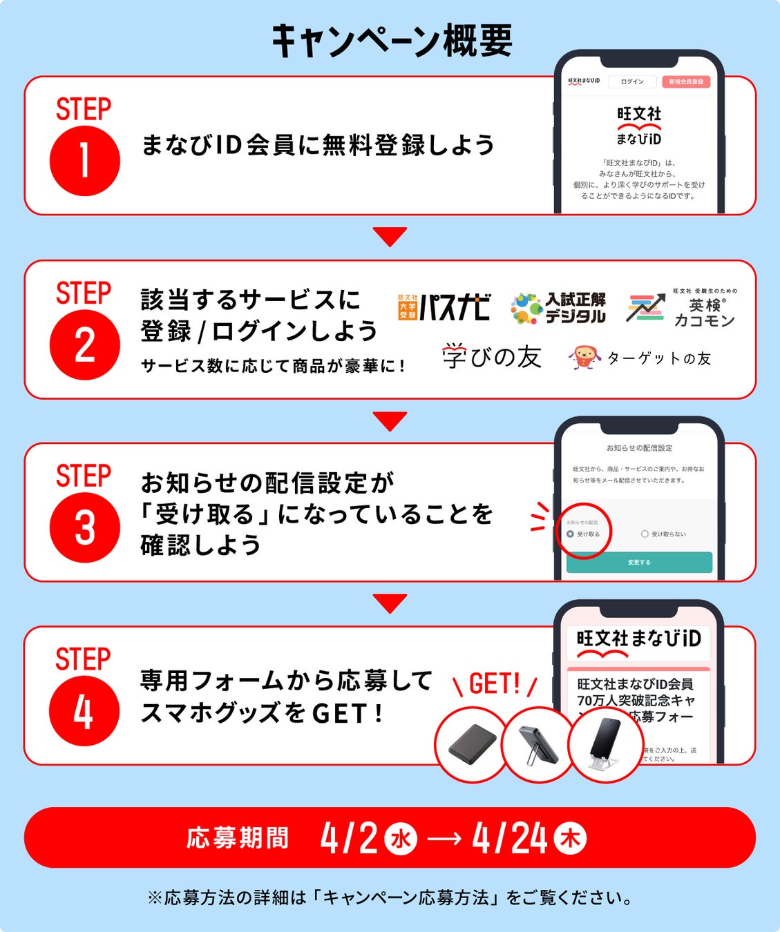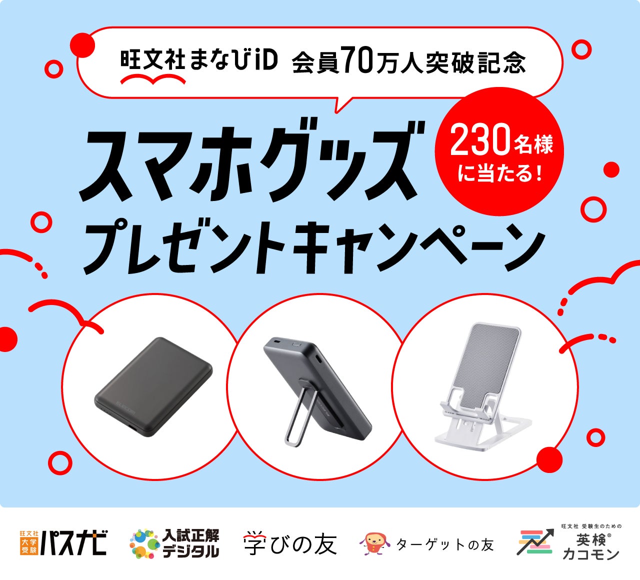 学ぶ人を応援する「旺文社まなびID」会員70万人突破記念!スマホグッズプレゼントキャンペーン開催!