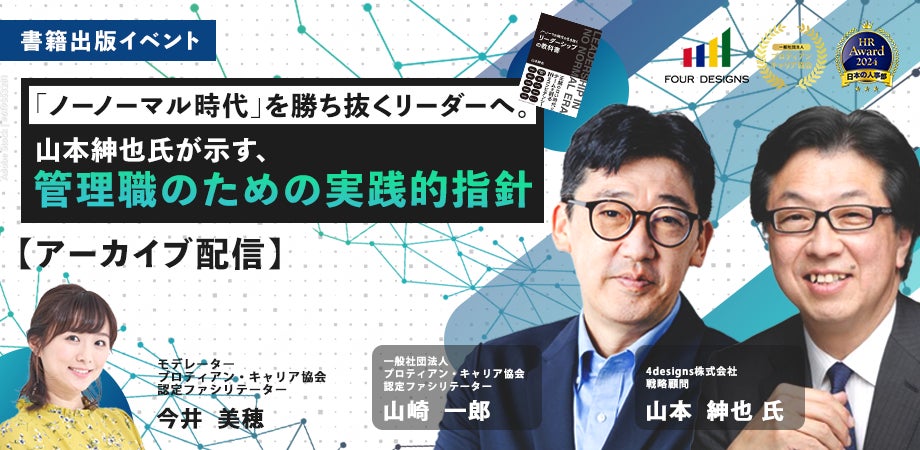 一般社団法人プロティアン・キャリア協会(東京都新宿区、代表理事:田中研之輔・有山徹、以下「当協会」)は、組織と個人のより良い関係構築と個人の主体的なキャリア開発を支援する団体です。このたび、山本紳也氏の新著「ノーノーマル時代を生き抜く リーダーシップの教科書」の出版を記念し、2025年5月29日(木)に開催したオンライン対談イベント「『ノーノーマル時代』を勝ち抜くリーダーへ。山本紳也氏が示す、管理職のための実践的指針」のアーカイブ配信を開始いたしました。