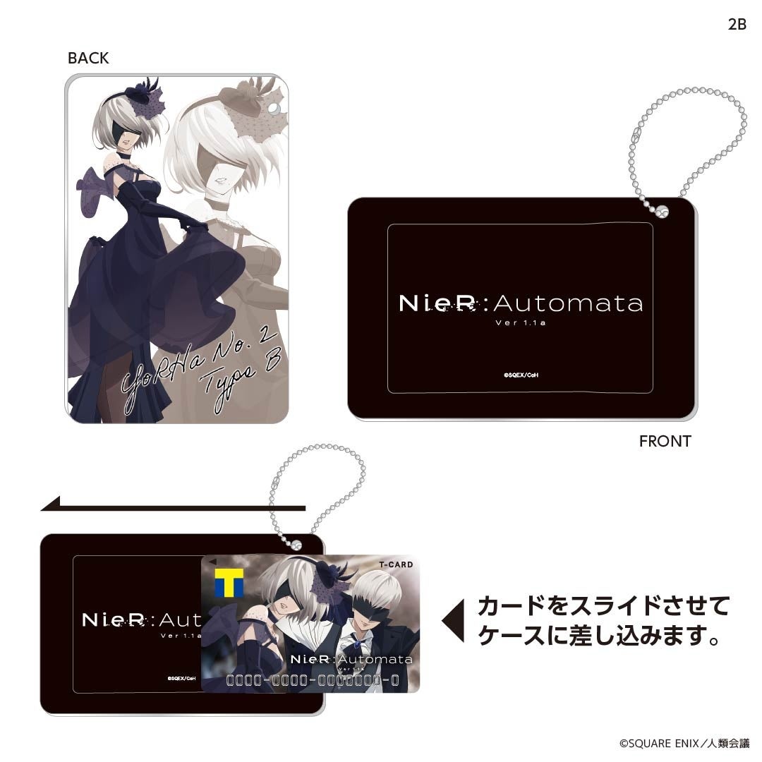 Tカードとセットで持ちたいスライドカードケース。美しく凛々しいドレスコードの2Bと9Sの描き下ろしデザイン!Tカードのみならず、ICカードを持ち運ぶ際にもぴったりです。